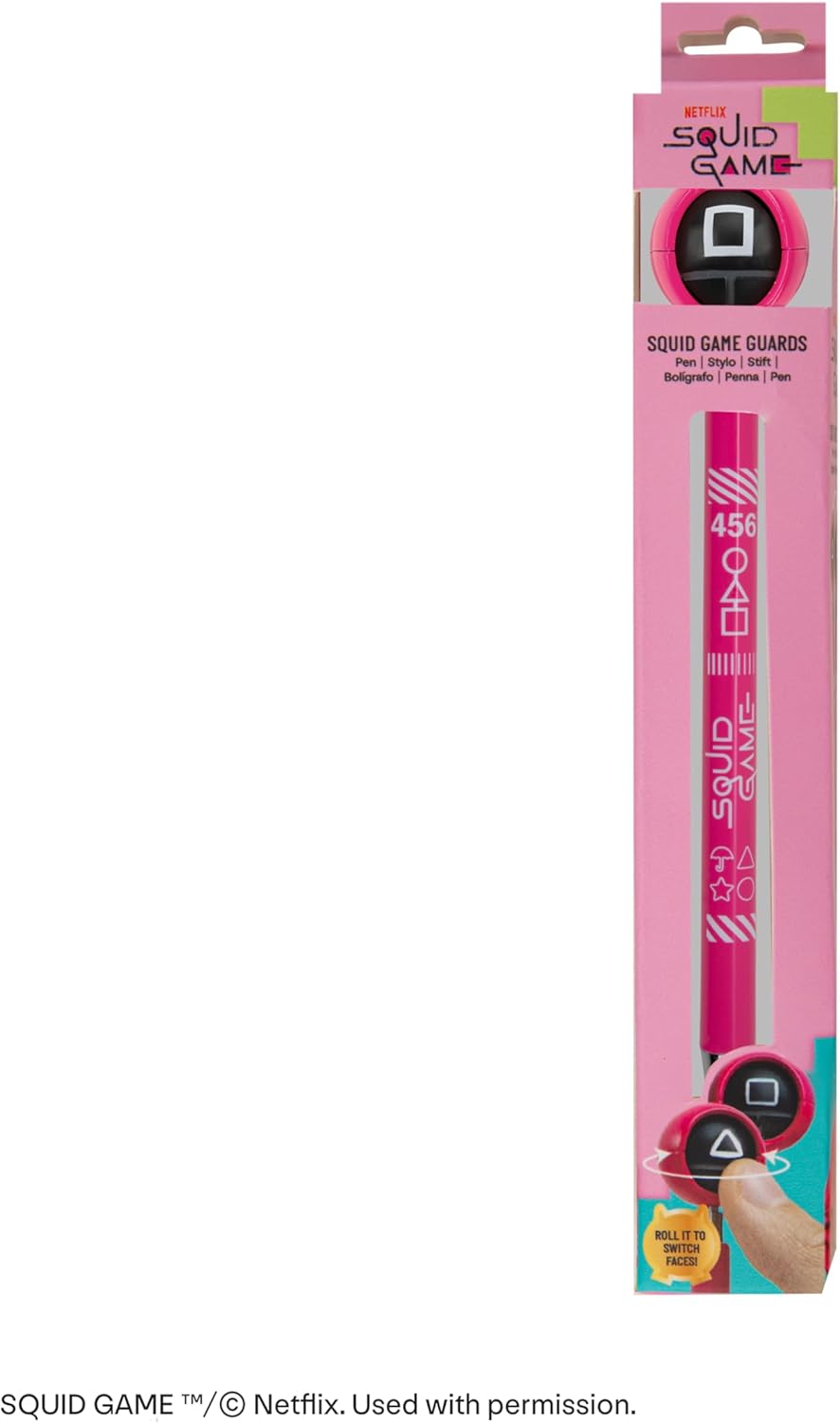 Preparatevi a giocare nell'arena del gioco Squid: questa penna vanta una vivace tonalità rosa, immediatamente riconoscibile dalla serie di successo. L'iconico logo delle guardie Squid Game, sottilmente incorporato nella testa della penna, aggiunge un tocco unico e accattivante. DESIGN ORIGINALE: il meccanismo scorrevole sulla testa della penna consente di trasformare il logo, aggiungendo un elemento di divertimento e sorpresa alla tua esperienza di scrittura. Prodotto di qualità eccellente: il meccanismo a scorrimento liscio è intuitivo e soddisfacente da usare, migliorando l'esperienza di scrittura complessiva di questa penna in ABS. PRODOTTO SOTTO LICENZA UFFICIALE: Questo prodotto è stato sviluppato sotto stretta aderenza alla licenza Netflix. Un marchio ben riconosciuto: Cinereplicas si affida a Netflix per rappresentarli in termini di produzione di merci e sviluppare linee di prodotti Squid Game di alta qualità.