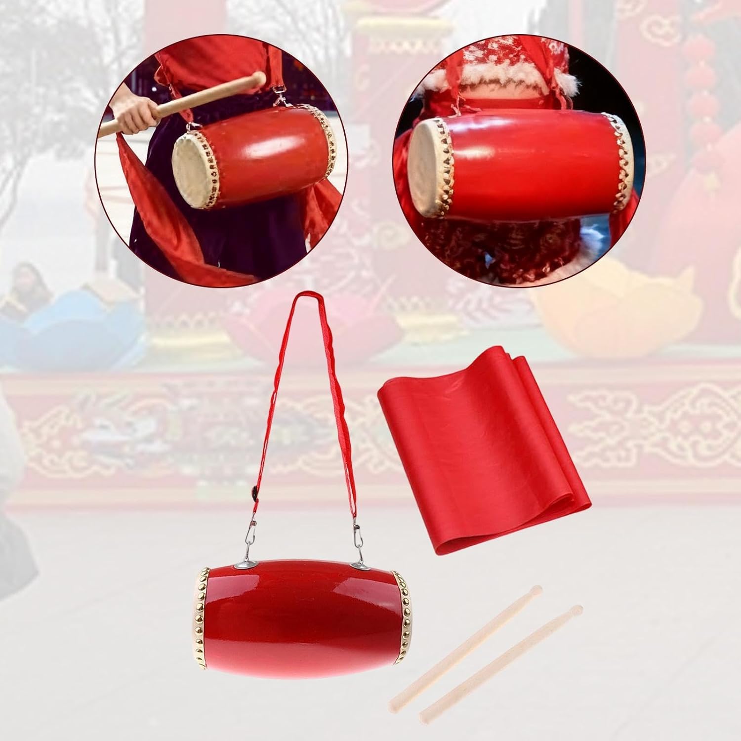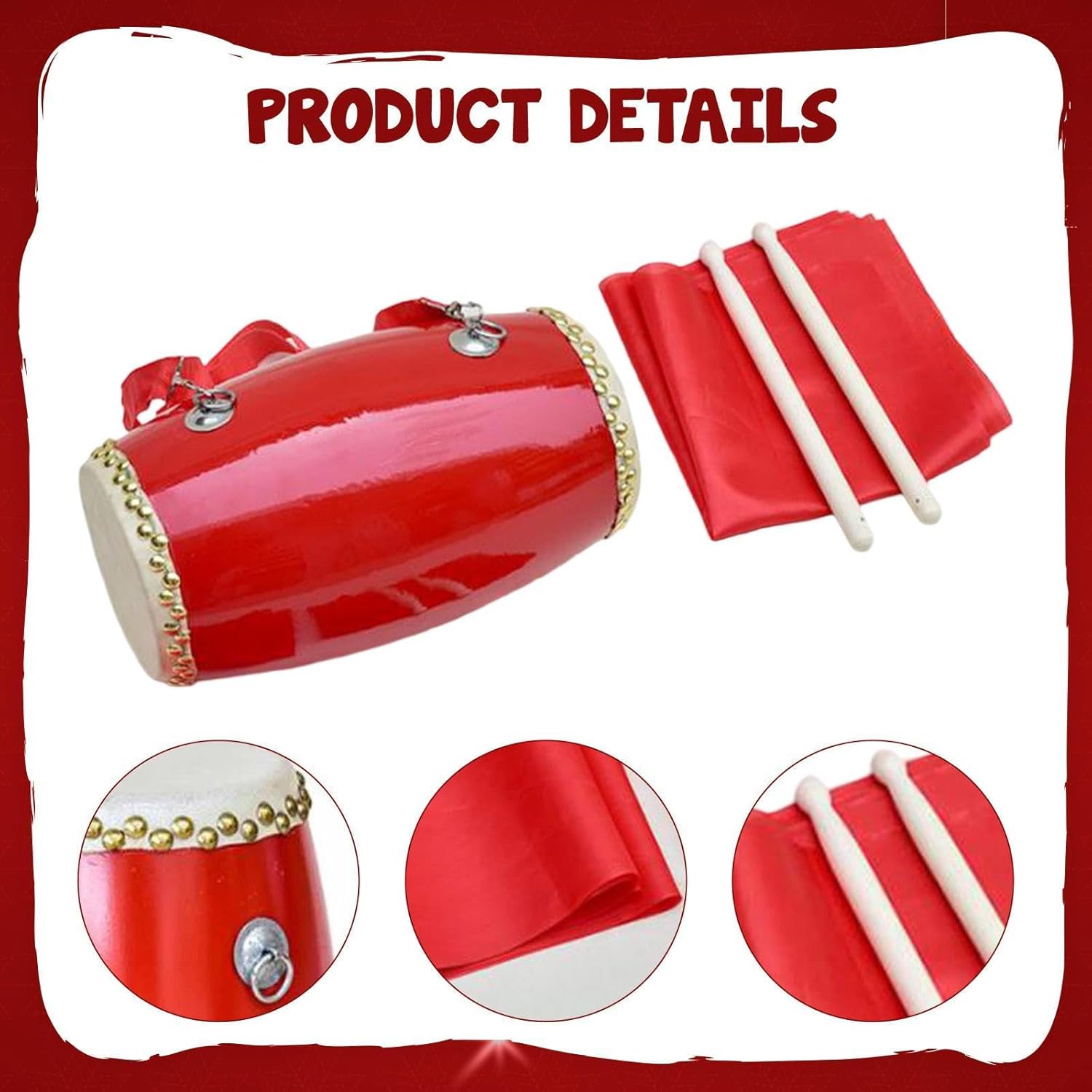 【Uso versatile】: design tradizionale ispirato ai classici tamburi cinesi, ottimo per attività culturali, eventi scolastici o come giocattolo musicale educativo a casa 【Materiale di qualità】: cinese è realizzato in PVC, questo per bambini è progettato per resistere al gioco energico senza rompersi, rendendolo adatto ai giovani batteristi 【Compatto】: Presenta una dimensione compatta di 14 cm x 32 cm / 5,51 pollici x 12,60 pollici, ideale per le manine dei più piccoli da tenere e suonare comodamente durante le lezioni di musica o le esibizioni festive 【Funzionalità】: La costruzione robusta incoraggia la partecipazione attiva alla musica e alla danza, aiutando allo stesso tempo a sviluppare le capacità ritmiche e la coordinazione occhio-mano 【Pacchetto completo】: il set completo include il , un paio di bacchette, una tracolla regolabile e una sciarpa quadrata decorativa: tutto ciò di cui il tuo bambino ha bisogno per iniziare a suonare