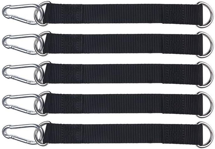 Cinghie resistenti per altalena: realizzate in nylon resistente, queste cinture da appendere offrono una soluzione di lunga durata per attività all'aperto con una capacità portante perfetta per altalene, sacchi di sabbia e attrezzatura da arrampicata Set completo da 5 pezzi: questa confezione include 5 cinghie per altalena e 5 anelli a moschettone in varie lunghezze (20 cm/30 cm/40 cm/50 cm) fornendo opzioni versatili per diverse esigenze di configurazione in campeggio o in palestra ambienti Uso esterno multifunzionale: adatto come catena di sicurezza, portachiavi o cintura per appendere attrezzi durante escursioni o viaggi; il colore nero si fonde discretamente con l'ambiente naturale e ogni set pesa circa 120 g Installazione rapida e sicura: dotata di un affidabile meccanismo ad anello che evita lo scivolamento, queste cinghie assicurano un fissaggio stabile ad alberi o travi senza danneggiare le superfici, rendendole veloci da installare e regolare Design sicuro e senza rischi: testato per scenari esterni generali tra cui aree giochi per bambini; la struttura robusta e i bordi lisci garantiscono nessun rischio durante l'uso, offrendo un supporto immediato per varie applicazioni da appendere