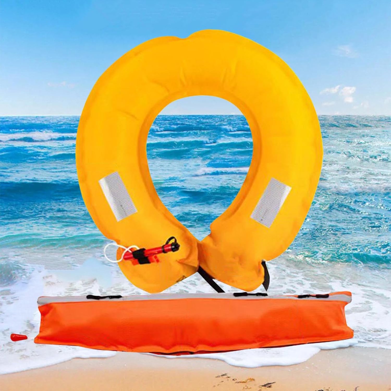 Durabilità: lo speciale materiale resistente agli strappi garantisce prestazioni di lunga durata di questo giubbotto salvagente gonfiabile con un uso ripetuto in tutte le attività acquatiche Visibile e protetto: con la tecnologia afterglow, strisce riflettenti e fischietto di segnalazione integrato, questa cintura di galleggiamento dà priorità alla tua protezione e aumenta la sicurezza in ambienti impegnativi o bui. Facile da usare: funzionamento con un solo tocco per l'attivazione istantanea, il rilascio manuale garantisce un rapido gonfiaggio del salvagente in pochi secondi durante le emergenze idriche per una protezione affidabile. Applicazioni pratiche: cintura di sicurezza compatta con portabilità flessibile per usi diversi. Leggero e discreto da trasportare, garantisce una protezione immediata dai rischi acquatici per un maggiore senso di sicurezza. Sistema di regolazione flessibile: fornisce una regolazione individuale per un'esperienza calda e sicura negli sport acquatici, garantisce una galleggiabilità affidabile e soddisfa efficacemente le diverse esigenze degli utenti