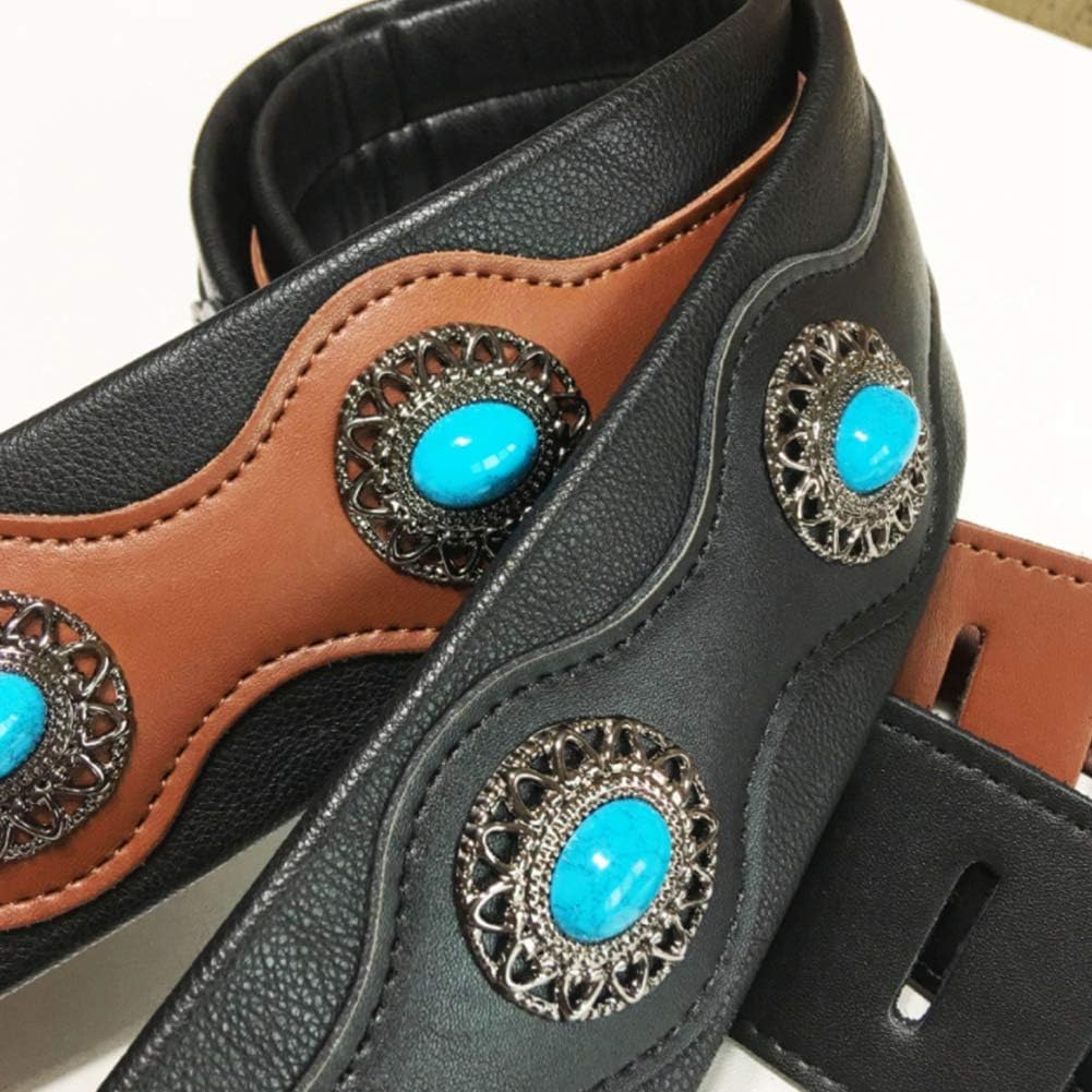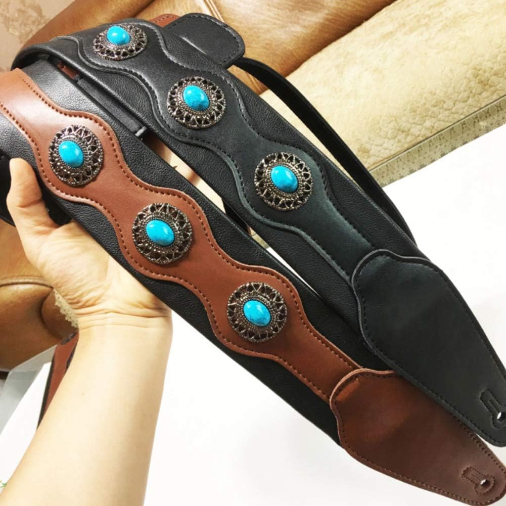 2. Il materiale in morbida pelle protegge le spalle. 1.L'aspetto etnico distintivo rende la tua chitarra più ornamentale. 3.La dimensione è regolabile, la più corta è 138 cm, la più lunga può essere regolata a 150 cm.