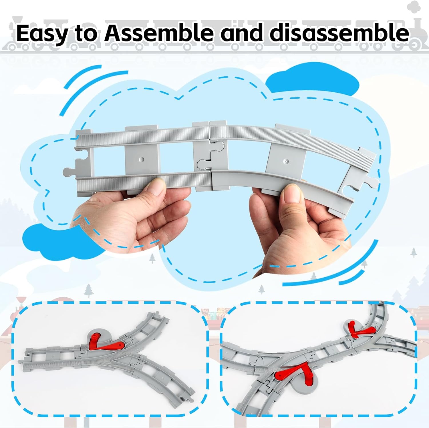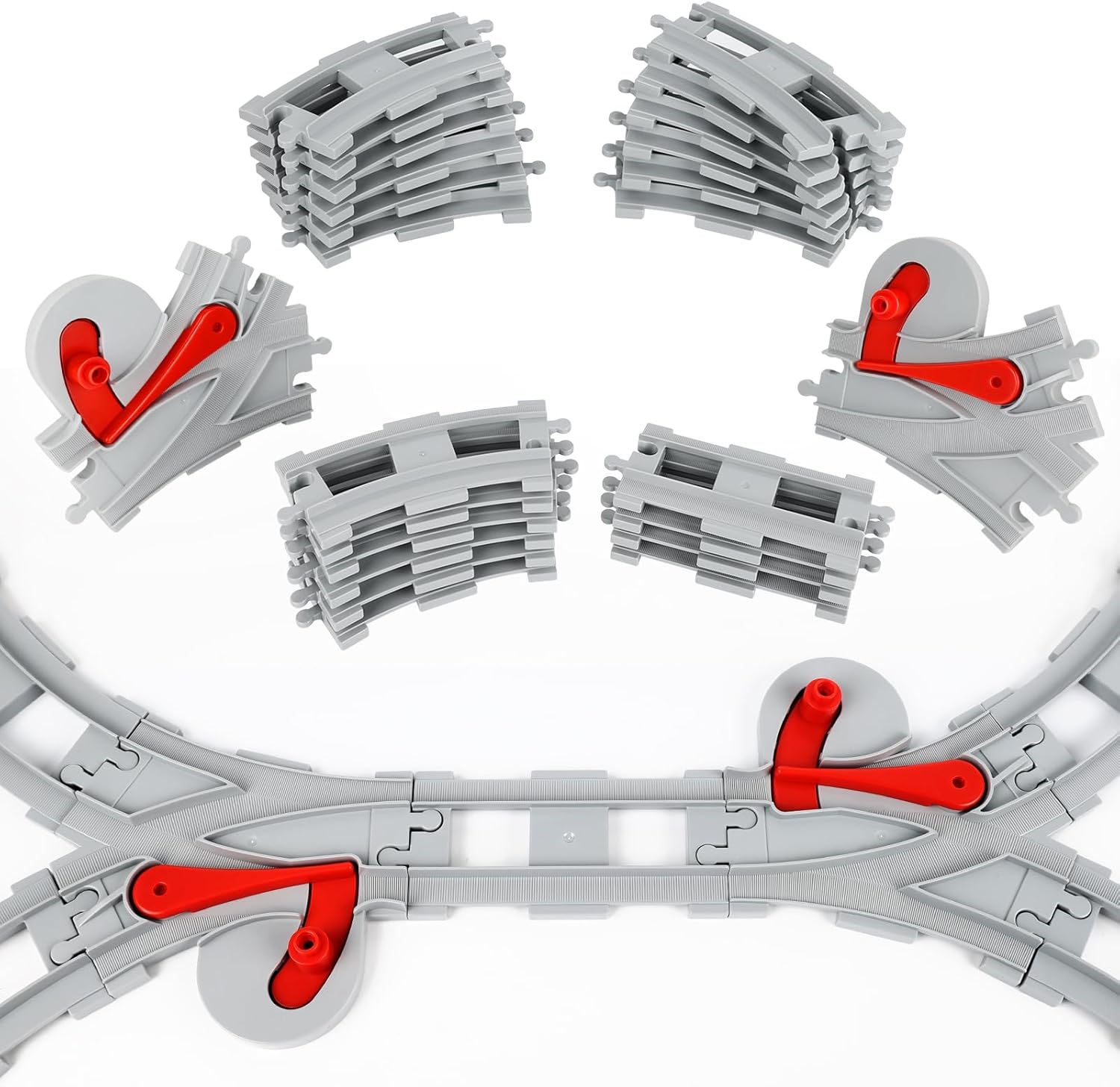 Sistema modulare da 24 pezzi con opzioni di stretching dinamico: pacchetto completo con 18 segmenti curvi, 4 binari dritti e 2 binari di derivazione. Consente di creare layout di percorso flessibili con percorsi ramificati, perfetti per la progettazione creativa della rete di trasporto e la pianificazione sperimentale attraverso combinazioni variabili curva-retta. Compatibilità universale: i connettori di precisione realizzati si adattano perfettamente alla maggior parte dei sistemi ferroviari standard. Ideale per ampliare le reti ferroviarie esistenti o per l'integrazione nei paesaggi urbani, con funzione di guida garantita di tutti i veicoli su linee rette e bidirezionali. INTUITIVE PLUG-AND-PLAY MONTAGGIO: grazie al sistema brevettato di chiusura rapida a pressione, il collegamento di tutti i tipi di ghiere (curve, rettilinei e rami) avviene semplicemente collegando. Nessun attrezzo richiesto: il materiale ABS flessibile consente di configurare facilmente i percorsi con opzioni di diramazione. PROMUOVERE COMPETENZE DI PIANIFICA: Ogni configurazione di percorso con binari di diramazione allena il pensiero spaziale avanzato e la capacità decisionale logistica. Dai corsi di base alle reti ramificate, il sistema supporta lo sviluppo della creatività tecnica attraverso percorsi mirati. Standard di sicurezza premium per un divertimento duraturo: materiale ABS di alta qualità, sicuro, non tossico e durevole per un divertimento senza fine. Le superfici resistenti e i bordi arrotondati garantiscono un utilizzo senza preoccupazioni: il set regalo ideale per i giovani architetti ferroviari.