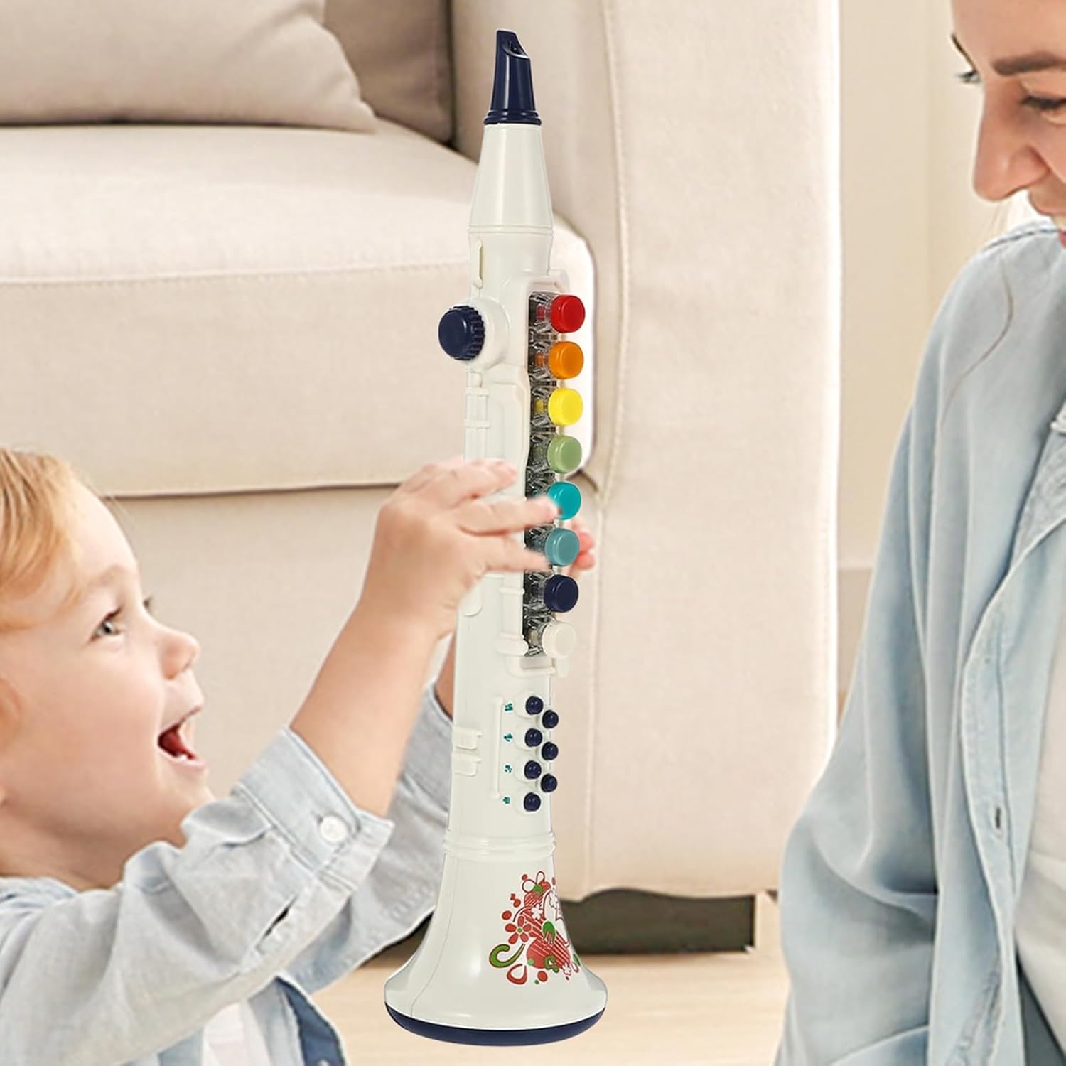 Divertimento musicale per tutti: lasciati coinvolgere nella sinfonia del divertimento con il nostro giocattolo per clarinetto. È progettato per deliziare e ispirare musicisti di tutte le età, instillando un affetto rapido e duraturo per questo strumento classico. Controllo creativo del suono: concediti il fascino musicale di questo clarinetto giocattolo con un design del volume regolabile a 5 velocità per un suono personalizzabile. Le caratteristiche pratiche e creative lo rendono la scelta perfetta per gli aspiranti musicisti che desiderano esplorare la propria armonia musicale. Esperienza musicale gioiosa: sperimenta la gioia e la felicità sul viso di tuo figlio con il nostro clarinetto giocattolo. Il regalo perfetto per i bambini per ispirare il loro amore per la musica e incoraggiare l'espressione creativa. Suono di alta qualità: con il suo design accurato e i tasti facili da usare, questo clarinetto giocattolo produce una qualità del suono meravigliosa, rendendolo la scelta perfetta per aspiranti giovani musicisti. Aiutante per l'apprendimento musicale: il nostro clarinetto giocattolo offre una grande opportunità di apprendimento musicale e ti consente di creare bellissimi ricordi con i tuoi bambini mentre esplorano il mondo della musica nota per nota.
