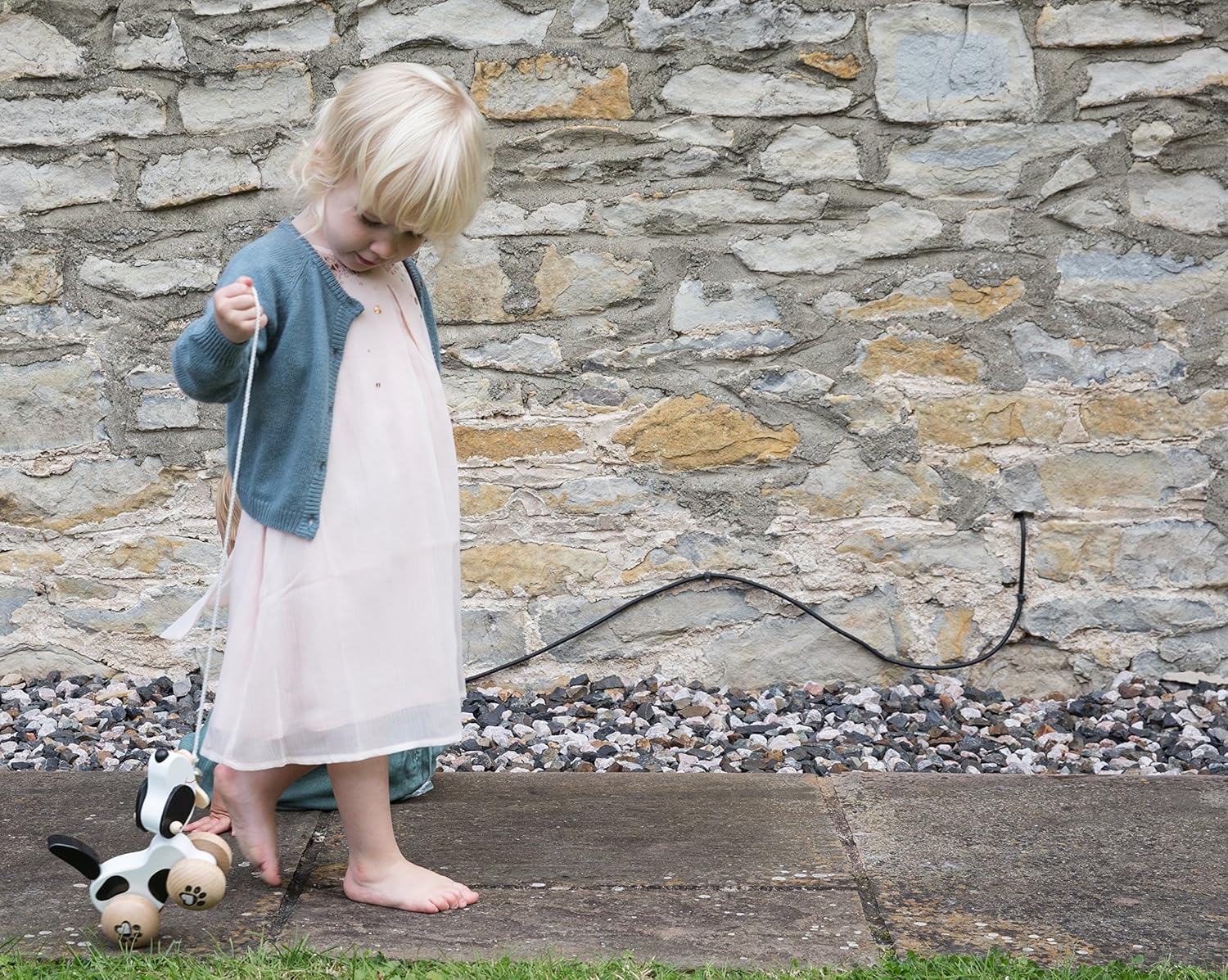 Simpatico bassotto da passeggio che può essere sia trainato che spinto, stimola il bambino a fare i primi passi, sviluppa la creatività, l'immaginazione e il gioco di imitazione Realizzato totalmente in legno, le orecchie dondolano durante il movimento, sulle ruote sono disegnate le zampine del cagnolino e il guinzaglio è legato alla bocca del cane tramite un osso Dimensione prodotto cm 17 x 8 x 14; da 12 mesi Prodotto di ottima qualita