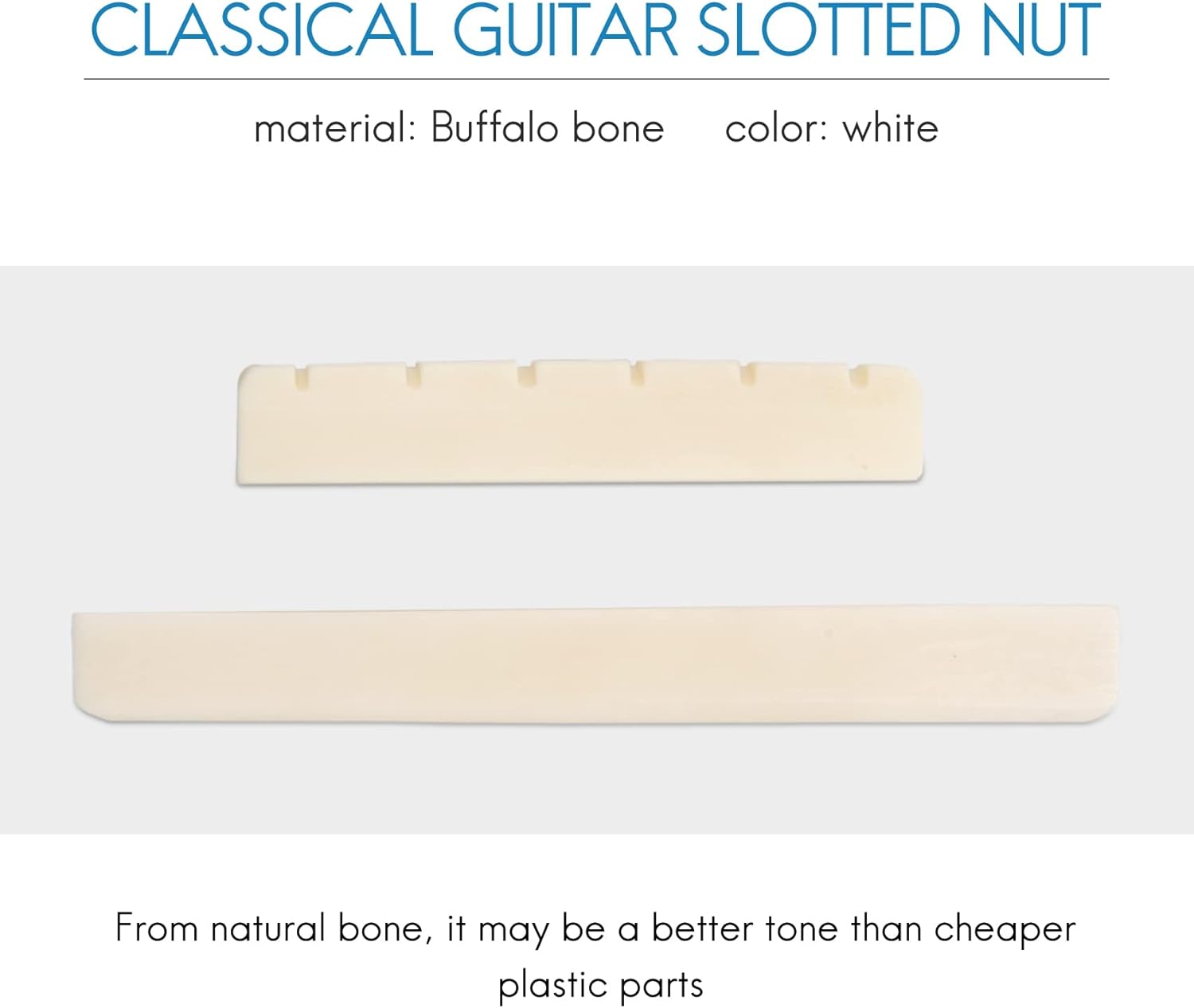 Compatibile con chitarra classica Dall' naturale, può dare un tono migliore rispetto alle parti in plastica più economiche Una e per chitarra Dimensioni del dado (L x P x A): 2,05 x 0:23 x 0:35/52 x 6 x 9 mm Dimensioni (L x P x A): 3,15 x 0:12 x 0,35/80 x 3 x 9 mm