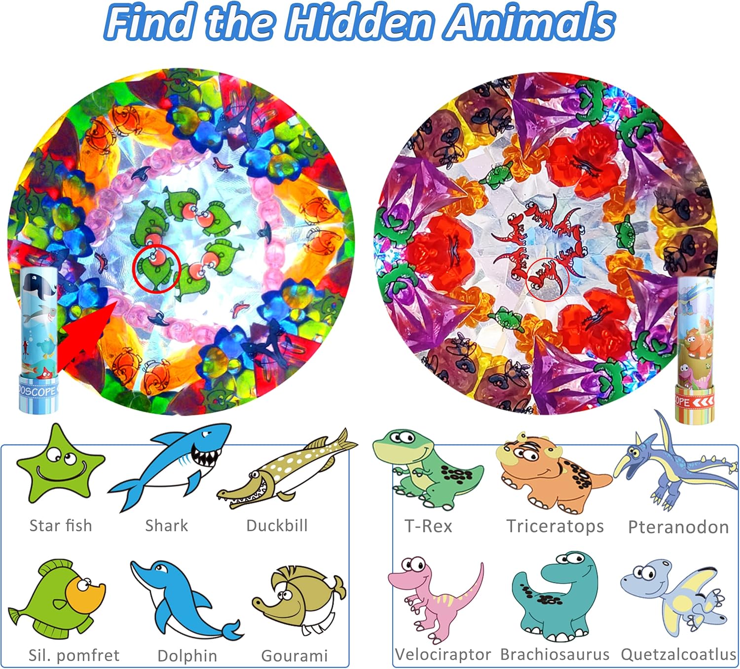 [Un classico amato dal 1816]: Inventato nel 1816, da ben 205 anni il caleidoscopio rappresenta un indelebile ricordo dell’infanzia per giovani e adulti. [Infiniti schemi cromatici]: Godeti infiniti motivi colorati semplicemente ruotando il cilindro. Ogni giro crea un mosaico magico, intricato e simmetrico che affascina e diverte i bambini di tutte le età. Trova gli animali nascosti con l'osservazione paziente e gli occhi curiosi dei bambini. [Esplora la bellezza della simmetria]: Scopri la bellezza della simmetria attraverso gli occhi dei bambini con il nostro caleidoscopio: un fantastico giocattolo educativo per l'apprendimento e il divertimento, che stimola la creatività dei bambini e ispira la loro immaginazione. [Fatto per durare]: Realizzato in stagno, il nostro caleidoscopio ha un rivestimento esterno resistente abbastanza robusto da sopportare il gioco quotidiano e che non arrugginirà nel lungo periodo. Ottieni ben due caleidoscopi (con tema mondo sottomarino) per i tuoi bambini. [Giocattoli per bambini certificate EN71]: Le lenti di plastica ABS sono sicure, trasparenti e prive di sostanze tossiche. Il caleidoscopio certificato EN71 è senza piombo e sicuro per bambini e bambine.