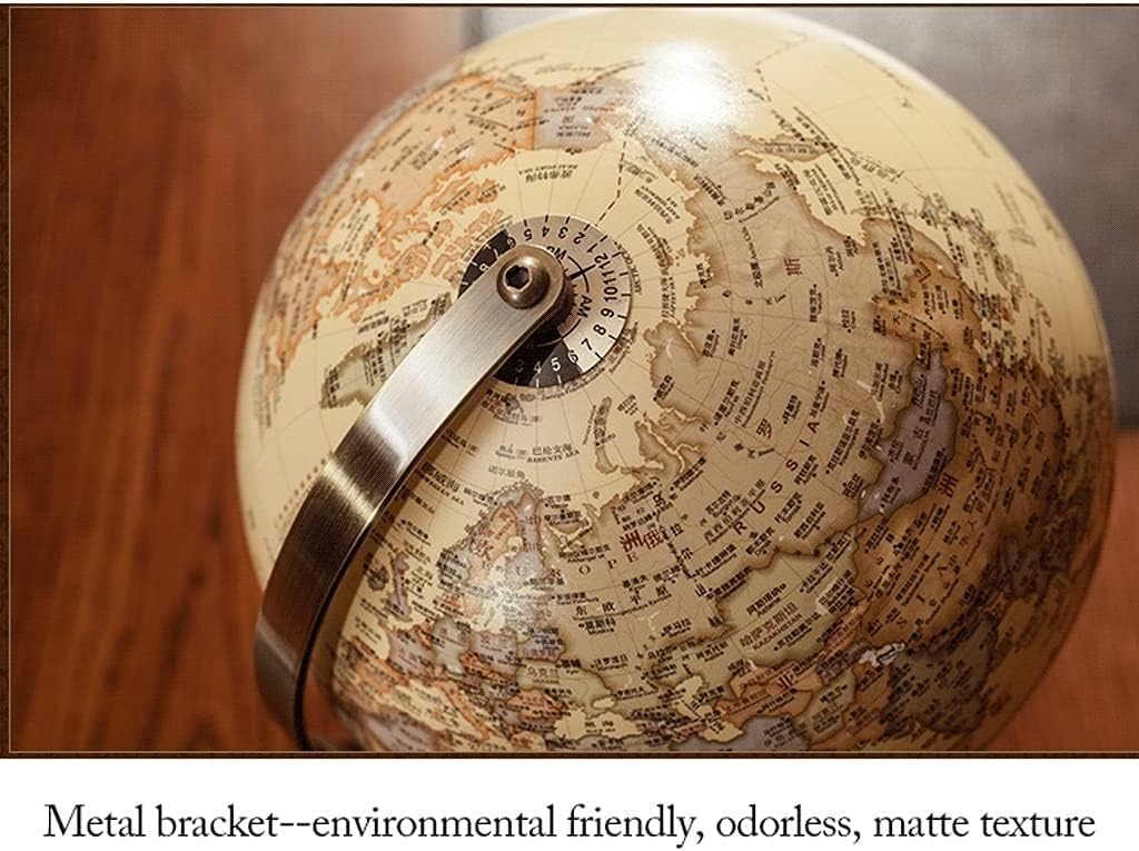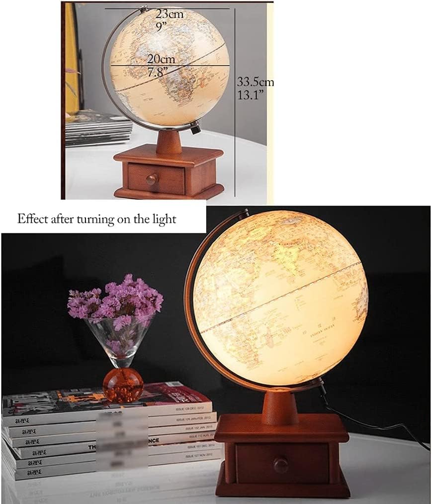 Design 2 in 1: il globo luminoso è dotato di luci LED controllate da interruttore, quindi può essere trasformato in un bellissimo globo luminoso per lo studio notturno. Staffa metallica: protezione ambientale, nessun odore particolare, consistenza opaca; effetto - luce soffusa, più chiara Elegante e pratico: mappamondo antico con base in legno e struttura in metallo, perfetto per l'arredamento di casa e ufficio (vintage) DECORAZIONE PERFETTA: aggiunge un effetto educativo ed estetico alla camera da letto di qualsiasi ragazzo, alla sala giochi della famiglia o al dormitorio per giovani adulti. Perfetto per una decorazione pratica: usa questo mappamondo per espandere i tuoi orizzonti e migliorare la tua conoscenza della geografia terrestre! Offre un modo divertente e conveniente per imparare l'educazione geografica a casa, in classe o in ufficio.