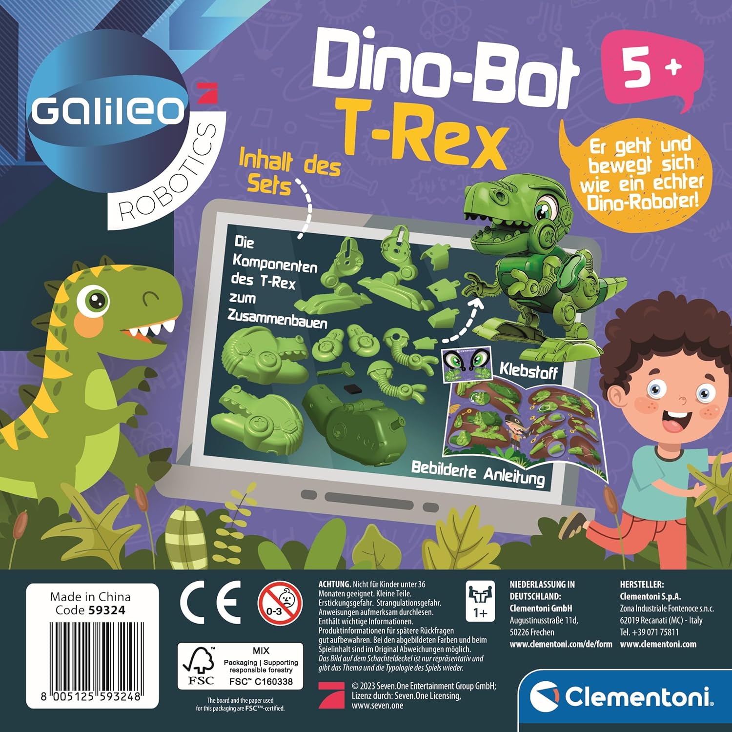 La tecnologia prima della scuola: il kit di costruzione permette a tuo figlio di costruire da solo il suo primo robot, mentre assemblandoli migliora la destrezza e promuove il pensiero logico. Ciao peluche, ciao robot! Con il primo robot nella cameretta dei bambini, vostro figlio acquisirà il piacere della robotica e i normali peluche diventeranno presto noiosi. Ritorno al Cretaceo: con il Tyrannosaurus Rex elettrico i dinosauri tornano in vita e si muovono in modo indipendente, mentre il vostro bambino può immergersi in un mondo di gioco fantasioso. Strumenti inclusi: lo strumento per assemblare il dinosauro è già incluso nel set, quindi non devi preoccuparti se in casa c'è il cacciavite giusto. Fornitura: 1 x Galileo Robotics DinoBot T Rex, giocattolo scientifico e robot a forma di serpente per bambini dai 5 anni in su di Clementoni - ideale anche come regalo per Pasqua, Natale o compleanni
