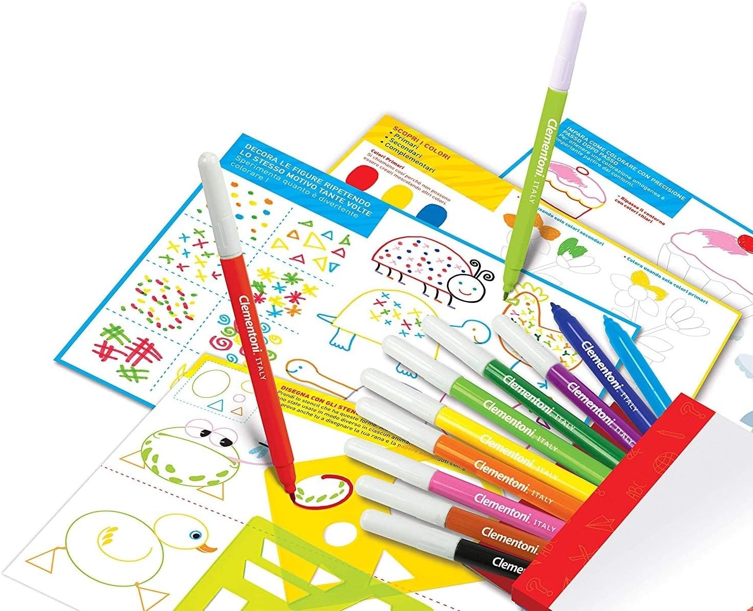 Un gioco pensato per gli artisti di domani, per scatenare la fantasia e divertirsi disegnando con numerosi pennarelli colorati Dal puntinismo, agli stencil, ai motivi decorativi, il gioco offre un percorso didattico progressivo che insegna le diverse tecniche di disegno realizzabili con i pennarelli Stimola la manualità e la creatività Il kit contiene pennarelli, schede didattiche e accessori per creare e sperimentare numerose tecniche di disegno