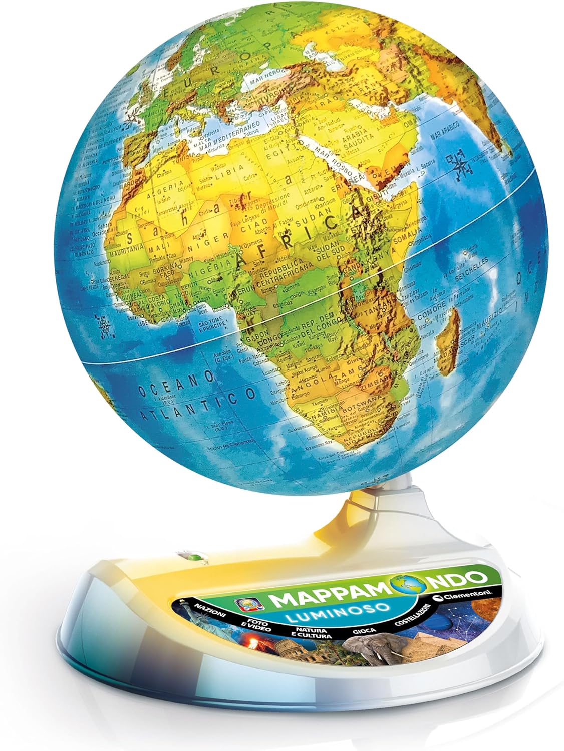 MAPPAMONDO LUMINOSO: un mappamondo elettronico luminoso, ricco di contenuti interattivi per apprendere la geografia e scoprire il mondo attraverso 5 attività diverse, con app dedicata per esplorare il globo in realtà aumentata IMPARARE GIOCANDO: 5 aree di attività da scoprire attraverso l'app dedicata, per scoprire tutte le caratteristiche del pianeta Terra divertendosi COME GIOCARE: scopri le nazioni, natura, città, cultura, costellazioni attraverso i contenuti in realtà aumentata; poi mettiti alla prova con divertenti quiz e giochi interattivi COSA CONTIENE: gioco educativo Made in Italy; adatto per bambini dai 7 anni in su, include un globo interattivo luminoso, con l'accesso all'app per esplorare in realtà aumentata CLEMENTONI SAPIENTINO: divertenti giochi educativi su animali, parole, numeri, colori e emozioni, per stimolare e supportare il bambino durante la crescita, offrendo strumenti per un apprendimento efficace e interattivo in ogni fase dello sviluppo