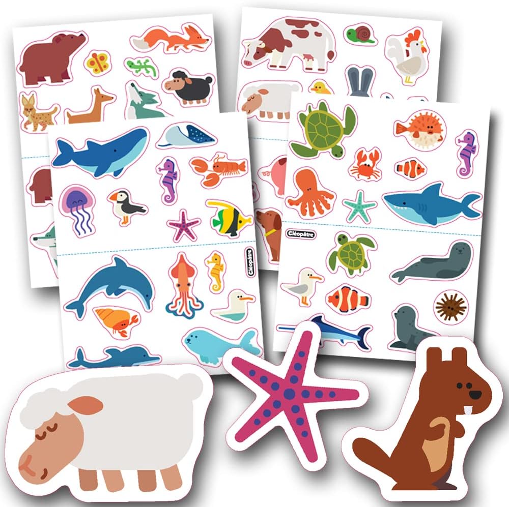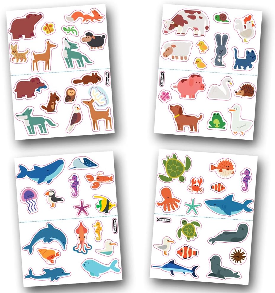 MAXI Gommettes che permettono al bambino di familiarizzare con gli animali che si possono trovare in montagna, nel prato, nel mare e nei fondali marini. ␞ Composto da 4 tavole da 15 adesivi con motivi e dimensioni assortite: lupi, orsi, volpe, pecora, mucca, delfino, tartaruga, granchio, squalo, balena... Ideali per l'apprendimento degli animali, permetteranno di realizzare diverse creazioni a seconda dell'immaginazione dei bambini. La loro dimensione MAXI consente una presa ancora più facile da parte dei più piccoli. Gli adesivi consentono di sviluppare la creatività e le capacità motorie del bambino durante l'incollaggio della gomma. Gli adesivi possono essere incollati su vari supporti: carta, legno, cartone, vetro, plastica... Questi adesivi colorati permetteranno al bambino di realizzare collage giocosi o abbellire i propri disegni, lasciando libero sfogo alla sua immaginazione.