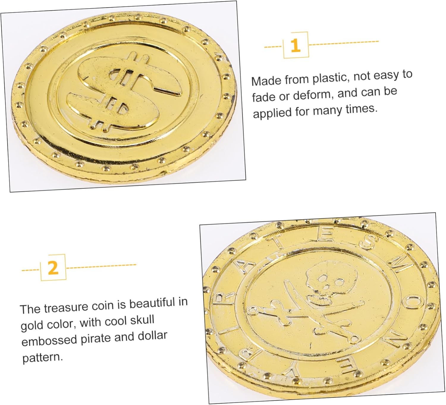 Monete plastica: la moneta è nel colore , con un fantastico teschio pirata in rilievo e un motivo, monete d' Monete pirata: la quantità sufficiente può soddisfare tue esigenze per giochi o per la sostituzione, monete dei pirati Monete intrattenimento: l'ampia quantità può soddisfare tue esigenze quotidiane decorazione e , monete plastica Monete : possono essere utilizzate anche per decorazioni trappole o come premi per i , monete intrattenimento Monete plastica: seppellisci monete in o luoghi e lascia gli ospiti della giochino alla caccia al dei pirati!, monete intrattenimento