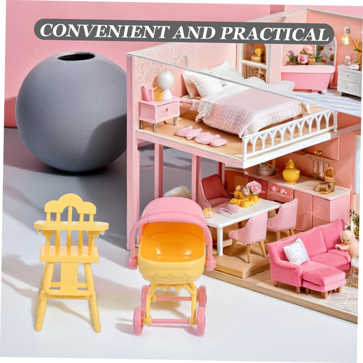 Accessori per mini-casa dettagliati: il set passeggini in miniatura una lavorazione intricata, fornendo un aspetto eccellente e realistico per la tua casa delle Mini delle : sue dimensioni ridotte e assicurano che il set giocattoli essere facilmente riposto occupare molto , perfetto per il divertimento Set completo: questo set include sia un che un seggiolone, soddisfacendo varie esigenze decorative e migliorando l'esperienza delle Design realistico: l'aspetto realistico e la facilità trasporto dei giocattoli li rendono un'aggiunta a qualsiasi casa delle Giocabilità migliorata: il mini può essere spinto e tirato, aggiungendo interattivi e alle attività della tua casa delle