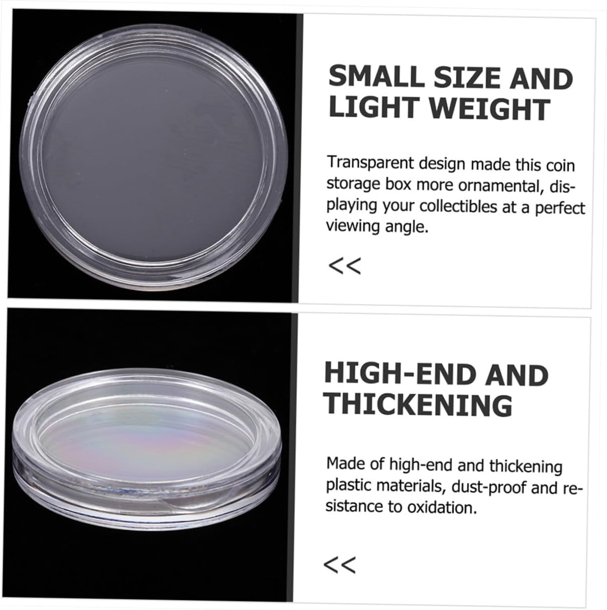 Capsule portamonete trasparenti: i portamonete sono realizzati in plastica e possono essere utilizzati a lungo. Pratici portamonete Contenitori per monete: puoi aprire facilmente e comodamente i contenitori per monete in plastica a mano, capsule per monete Capsula per monete: realizzata con materiali plastici di alta qualità e ispessimento e resistente alle scatole per monete Proteggi monete trasparenti: gli organizzatori trasparenti sono convenienti per conservare, esporre e scambiare monete e medaglie. Pratici contenitori per monete protettive per monete: il design trasparente è un buon modo per esporre le tue monete, capsule per monete trasparenti molto pratiche e convenienti