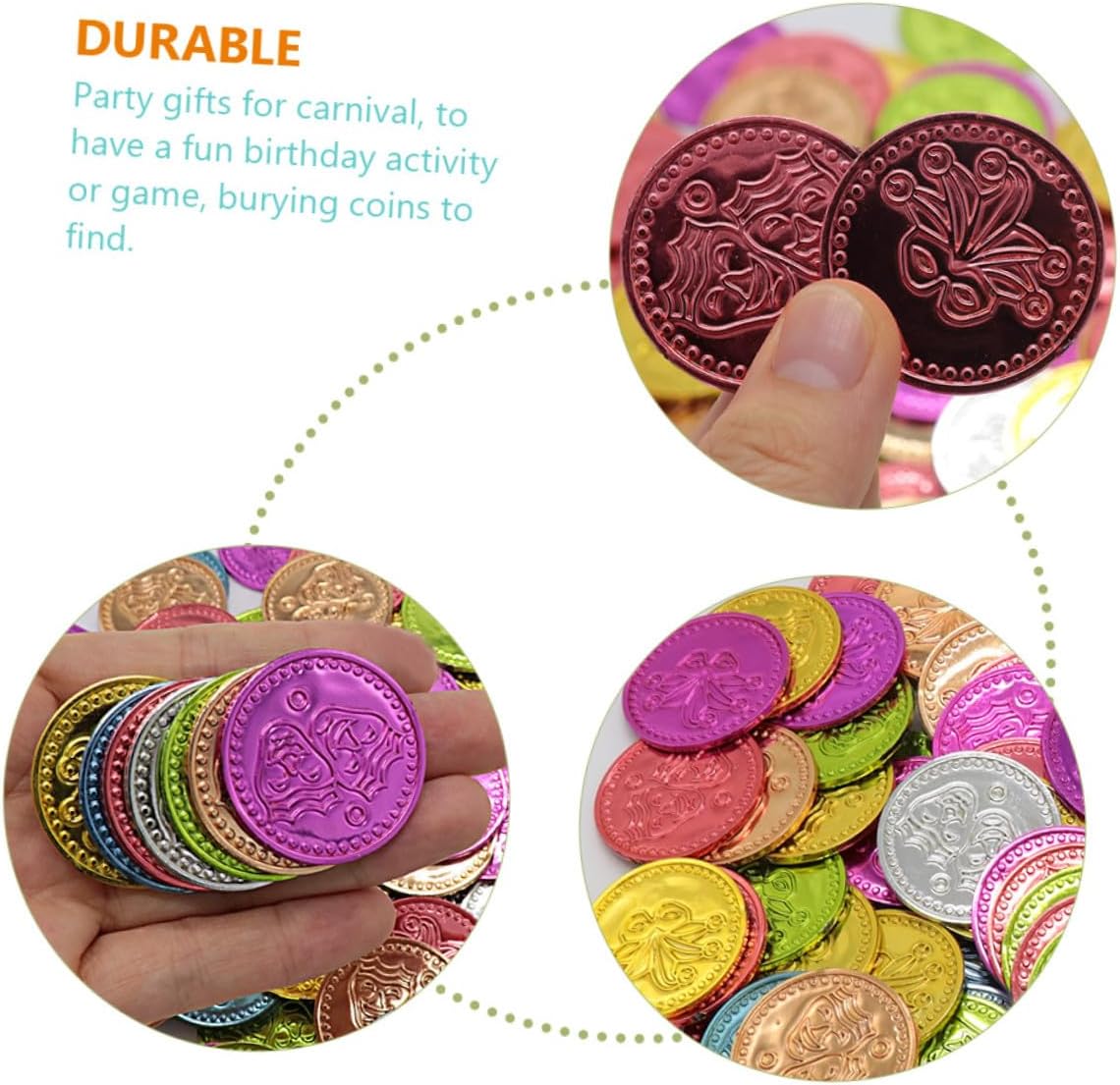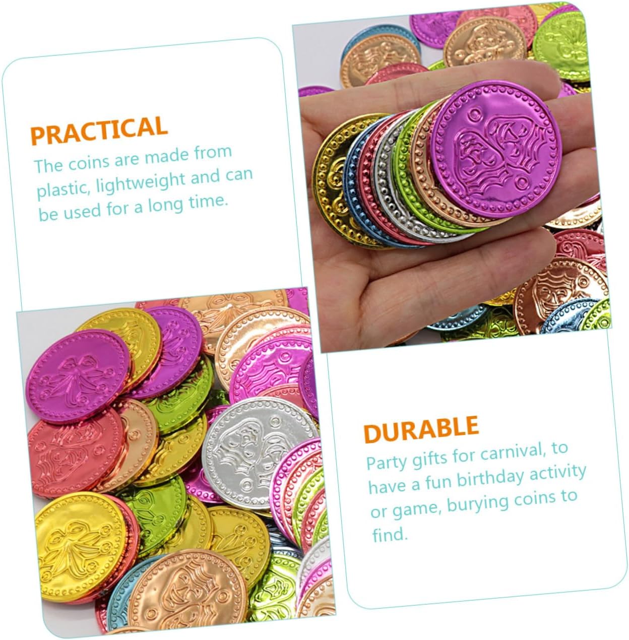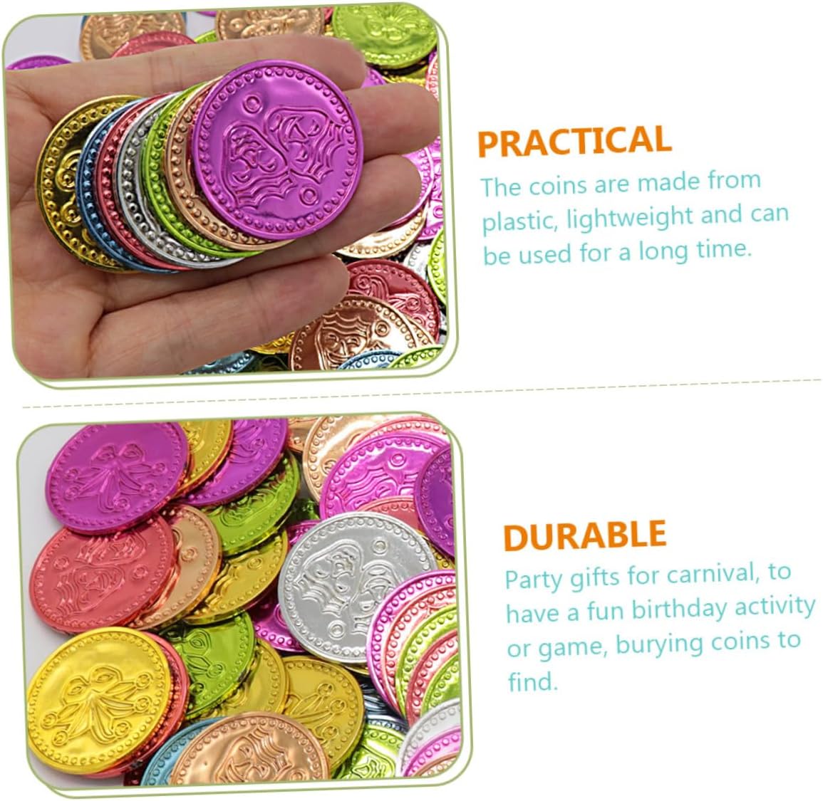 Giocattoli del tesoro - con forma compatta, leggeri e portatili, puoi metterli ovunque, Monete del tesoro Bomboniere - Festa di carnevale per divertirti con un'attività o un gioco di compleanno, seppellire monete, Monete da gioco in plastica - queste monete sono fatte di materiale plastico, quantità sufficiente per soddisfare le tue diverse esigenze, Giocattoli del tesoro dei pirati Forniture per feste - dimensioni compatte, queste monete non si portano via e puoi metterle ovunque, -Decorazioni per feste Monete da gioco per feste - Queste monete sono molto adatte per feste a tema pirati, feste di Halloween, feste di compleanno, cacce al tesoro, giochi di società premi