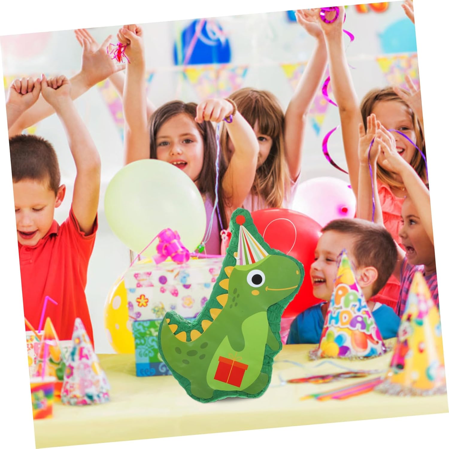 Pinysta di dinosauro: realizzato in carta sicura, è sicuro e riutilizzabile, ti offre un'esperienza di utilizzo piacevole ed è una decorazione piñata di compleanno. Giocattoli per feste: il design divertente rende la tua festa più divertente e interessante. Usa la piñata di dinosauro come decorazione per le feste o chiedi agli ospiti di provare a turno a rompere la piñata per rilasciare tutte le caramelle all'interno. Decorazioni per piñata di dinosauro Forniture per feste di dinosauri: adatte per un'atmosfera più allegra, che ti fa sentire più felice. Perfetta per vari eventi come feste di compleanno, feste scolastiche, feste a tema e altri eventi simili, piñata decorativa appesa: pregevole fattura e aspetto creativo, i festival e le persone radiose lo adorano, accessori decorativi della piñata per feste di compleanno: presenta un bellissimo, unico e creativo design a forma di dinosauro, che attirerà molto l'attenzione della gente. Piñata a forma di dinosauro