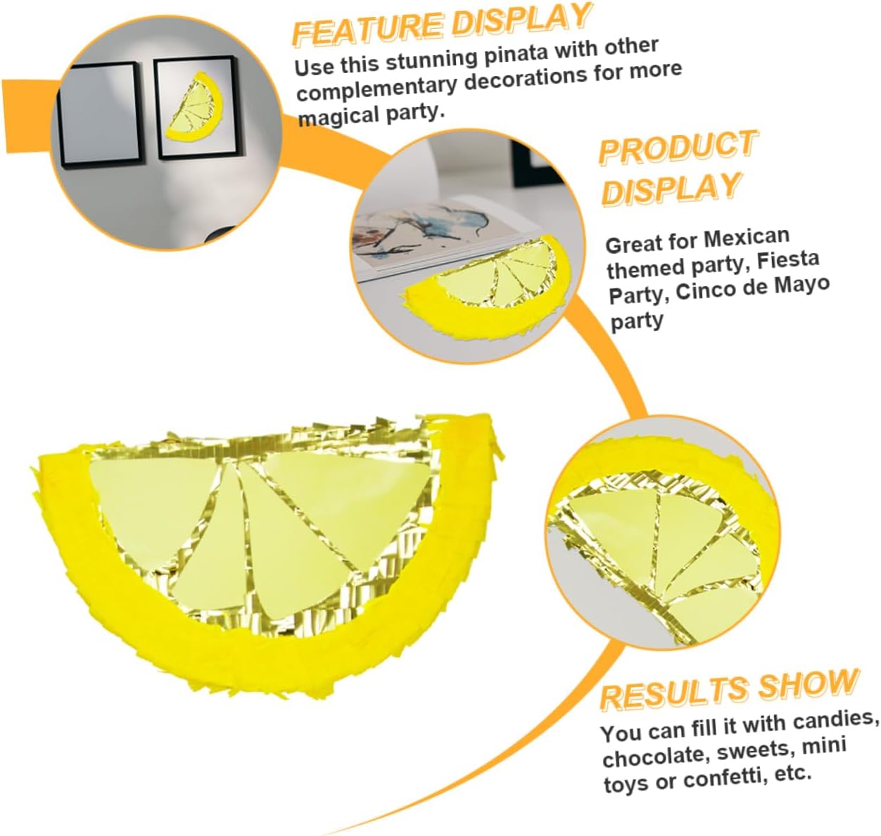 Forniture per feste Piñata: ideali per feste a tema messicane, fiesta, feste Cinco de Mayo, feste di compleanno e altro ancora, Piñata per feste di compleanno Piñata per feste: puoi appenderla dove preferisci, ad es. b. sul muro, sulla porta, sull'albero, lungo il corridoio., piccola piñata al limone Piñata al limone: ravviva la tua festa con questa piñata e crea un'atmosfera allegra per la tua festa, decorazione messicana Piñata per feste di compleanno: adatta per riunioni di famiglia, feste di compleanno, feste Cinco de Mayo, Natale., decorazione centrotavola piñata Piñata al limone: questa piñata è realizzata a mano in materiale cartaceo, lavorazione squisita e giocattoli a forma di limone.