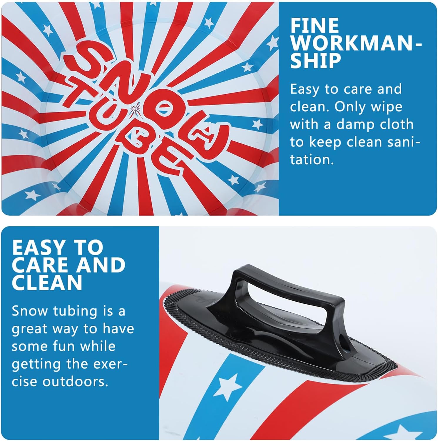 Tubo da neve robusto e durevole per resistere agli urti e all'estrusione. Presenta elevata resistenza all'usura, buona resistenza allo strappo, buona ermeticità, resistenza alle basse temperature, durevole e di facile manutenzione. Tubo da neve invernale gonfiabile: la maniglia ti aiuta a sederti e ti impedisce di cadere. Cuscino scorrevole Snowtube per l'inverno all'aperto - il rivestimento in PVC rinforzato sul fondo consente di scivolare più velocemente quando si va in slitta su colline innevate in inverno, neve gonfiabile Cuscino da neve scorrevole - i prodotti gonfiabili in PVC hanno una struttura ermetica e deve essere utilizzato, tubo da neve per lo slittino Tubo da neve gonfiabile - superficie liscia per una seduta comoda, questo cuscino da sci può regalarti una meravigliosa esperienza sugli sci, cuscino gonfiabile da esterno