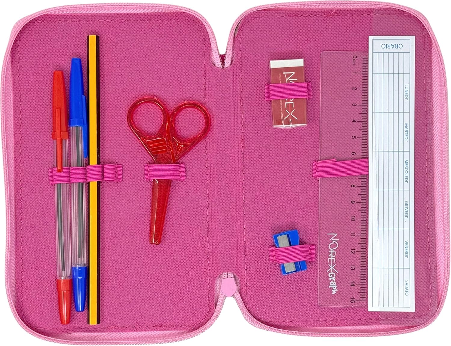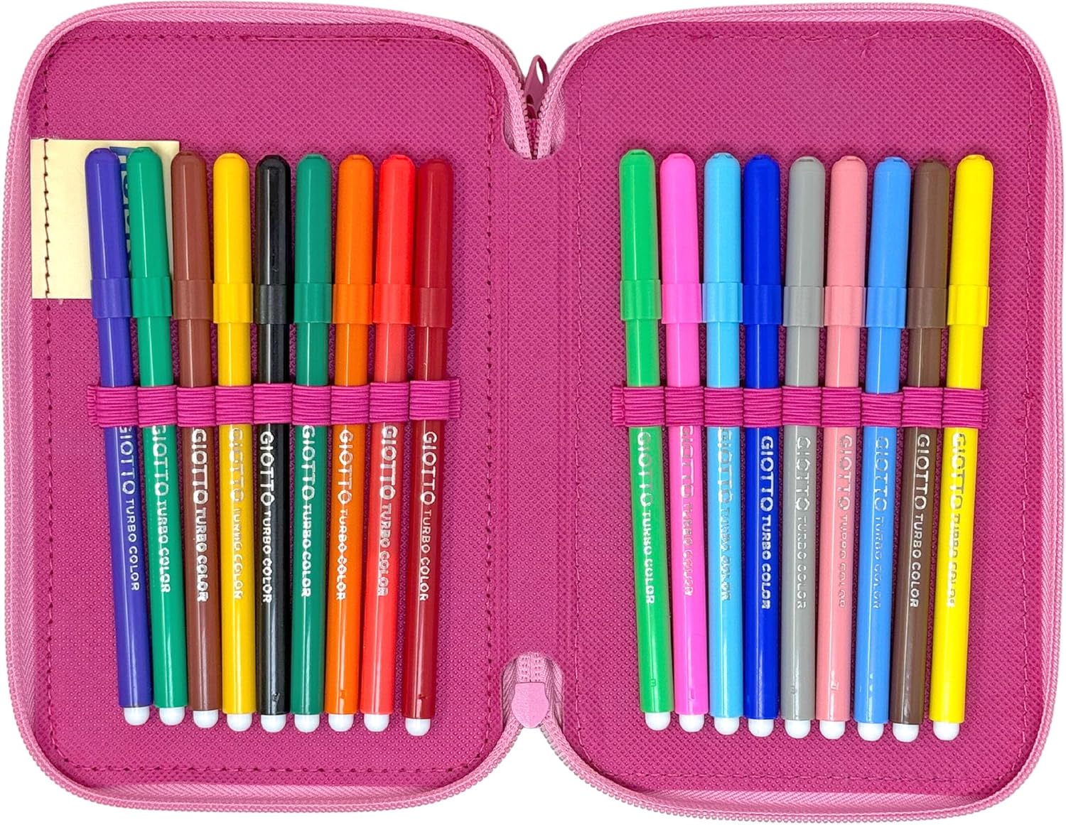 🎒 Astuccio 3 Scomparti Completo: include tutto il necessario per la scuola: 1 matite, 2 penne, 1 gomma, 1 righello, 1 temperino, 1 paio di forbici, 1 segnaorario, 18 matite colorate e 18 pennarelli Giotto Turbo Color. 🦔 Design Ufficiale: stampa con protagonista il tuo personaggio preferito. 📐 Ordine e Praticità: struttura con 3 zip e scomparti separati per organizzare al meglio tutto il materiale, con elastici per ogni articolo. 🎁 Perfetto per la Scuola e come Regalo: ideale per bambini e ragazzi di scuola primaria e media; ottimo regalo per compleanni o ritorno a scuola. Colori Vivaci e Creatività: include 18 pennarelli a punta fine e 18 matite colorate per dare spazio alla fantasia durante disegni e compiti.