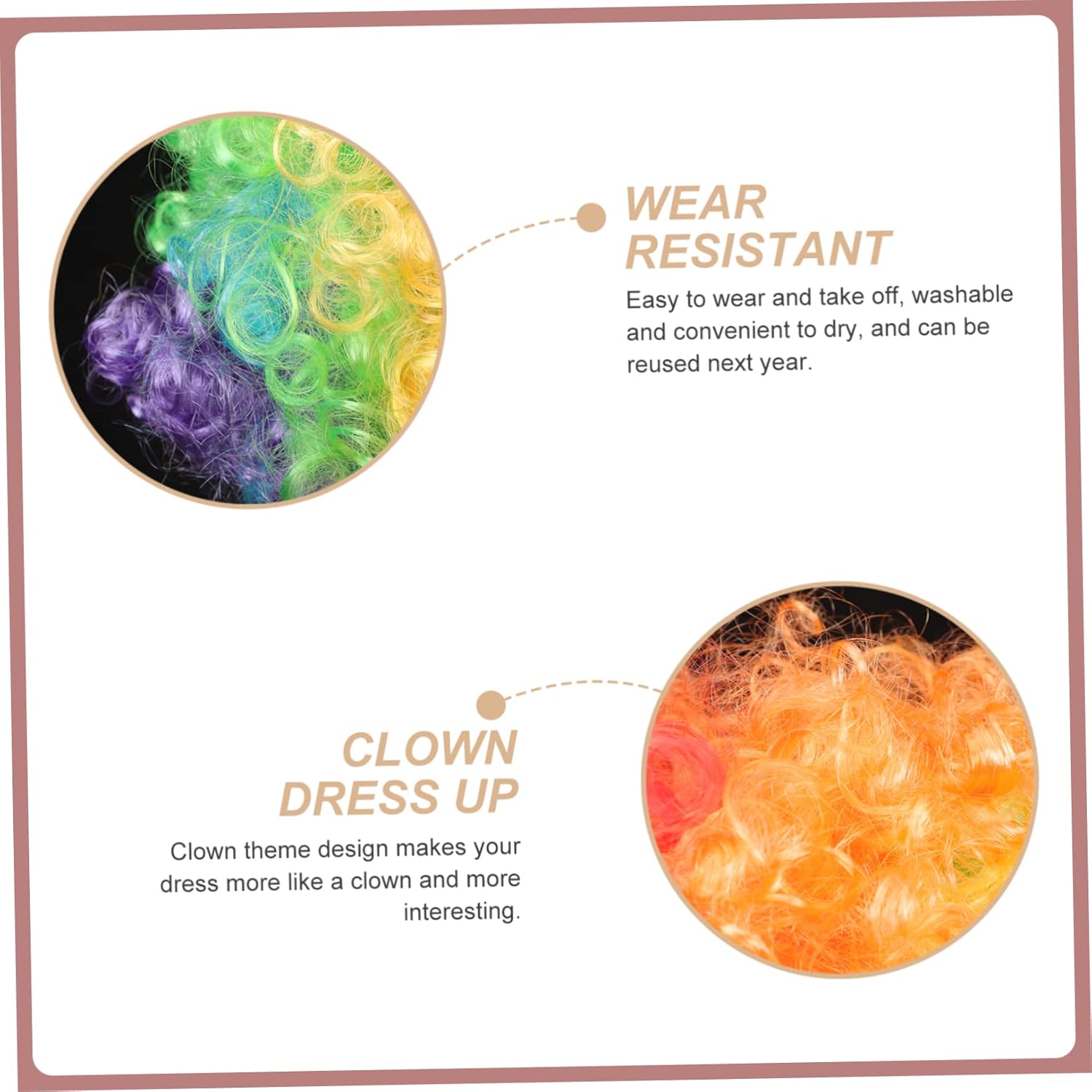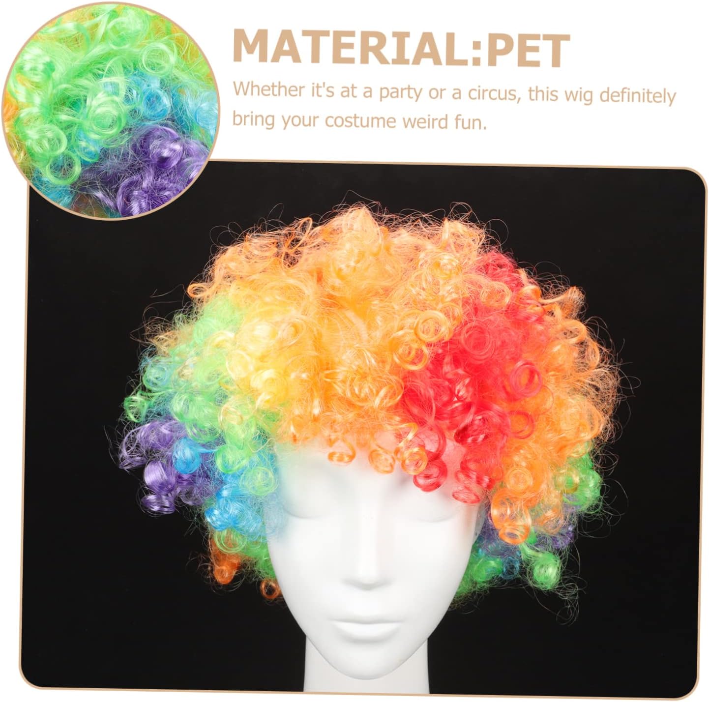 dei pacchetti 1 x da pagliaccio Caratteristiche -Dimensioni: 30,00X30,00X20,00cm;/11,79X11,79X7,86in; parrucche colorate -Materiale: finti in PET per festival -Colore:Parrucche divertenti assortite -Che a una festa o al circo, questa parrucca donerà sicuramente al tuo costume un tocco di strano divertimento da carnevale con i finti. -Il design a tema clown rende il tuo vestito più simile a quello di un clown e le parrucche più divertenti e interessanti per le feste. -Realizzato con materiali PET di alta qualità, che possono essere durevoli, resistenti all'usura e pratici per i da clown. -Travestiti per feste in maschera, spettacoli teatrali, feste in maschera, Halloween, ecc. con divertenti parrucche. -Facili da indossare e da togliere, lavabili e facili da asciugare, possono essere riutilizzati l'anno successivo come finti decorativi. Informazioni sulle merci da clown del festival Il design a tema clown rende il tuo vestito più simile a quello di un clown e più interessante. Parrucche da clown divertenti Facili da indossare e da togliere, lavabili e comode da asciugare e possono essere riutilizzate l'anno prossimo. Parrucche colorate La nostra parrucca da clown è realizzata con materiale di qualità
