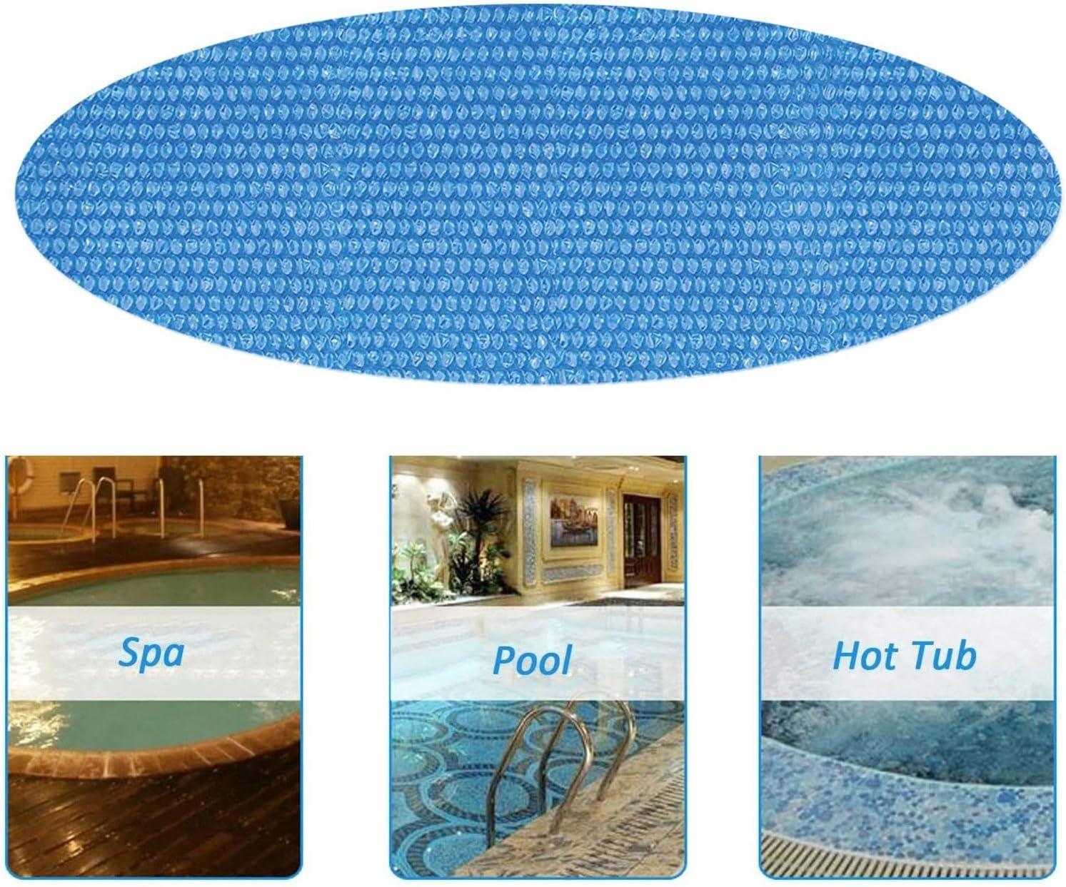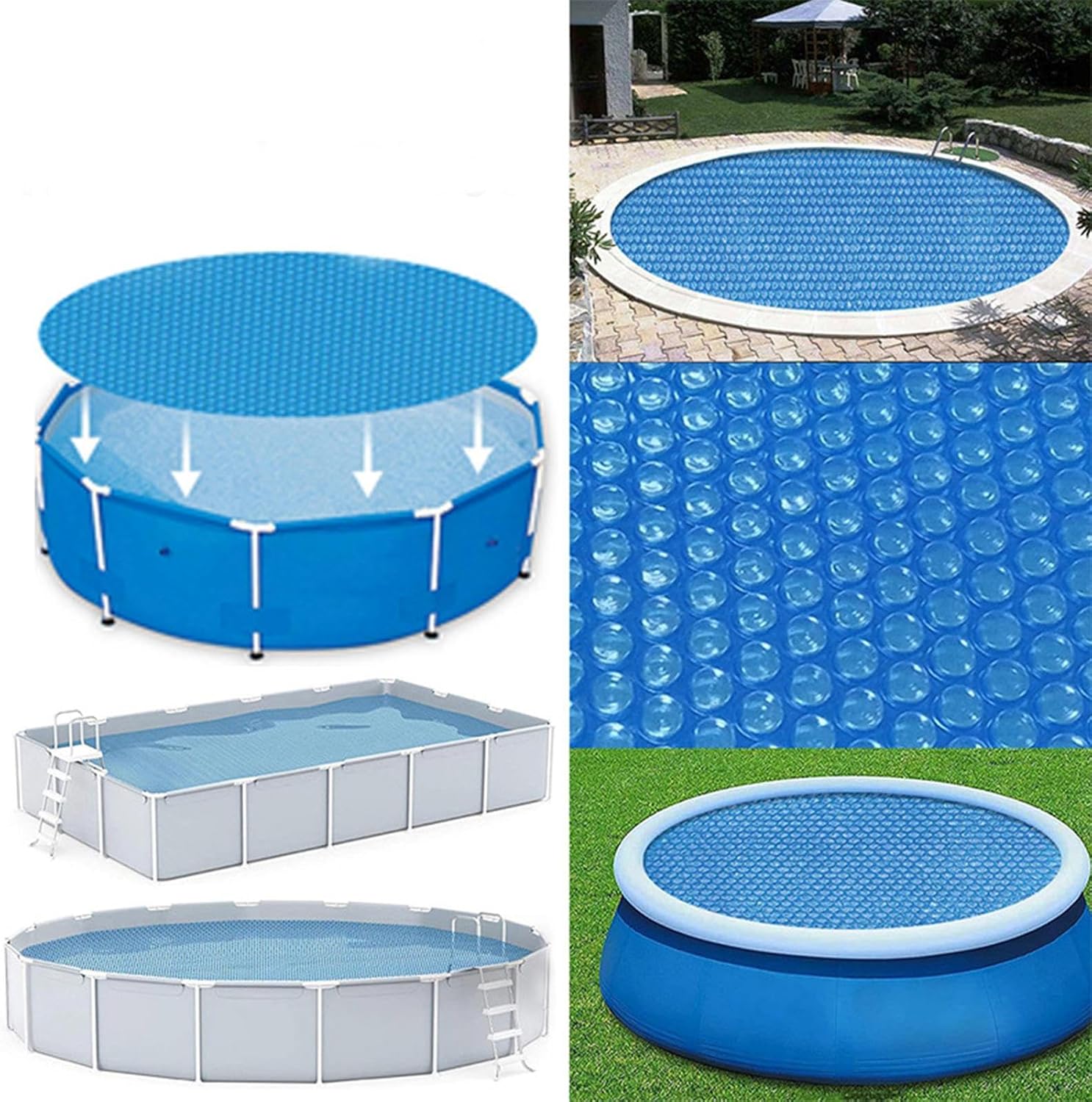Risparmia acqua e denaro: con questa copertura a bolle per piscina, puoi evitare di sprecare acqua e ridurre l'evaporazione 'acqua della piscina del 95%, quindi non è necessario ricaricare ogni nuotata. Ampiamente applicabile: mantieni una piscina pulita e calda: questa copertura solare per piscina tiene lontane foglie, polvere e altre particelle che possono inquinare l'acqua della piscina. Aiuta anche a trattenere il calore e prevenire la perdita d'acqua, risparmiando energia e denaro. È adatto a qualsiasi superficie della piscina, indipendentemente dalla forma o dalle dimensioni. Forma flessibile: taglia liberamente questa copertura solare per piscina per adattarla alla forma della tua piscina. Manterrà la tua piscina pulita e calda indipendentemente da come la tagli. Prestazioni termiche: mantieni la tua piscina calda e accogliente con questa copertura solare per piscina. È realizzato con membrane a bolle blu che mantengono la temperatura della piscina in estate e in inverno, essendo più sicure e rispettose 'ambiente. Materiale sicuro: questa copertura solare per piscina ti aiuta a mantenere la tua piscina calda e confortevole intrappolando il calore del sole. È realizzato in resistente materiale a bolle d'aria in PE che può resistere ai raggi UV e all'usura. Questa copertura è perfetta per godersi la piscina tutto l'anno.