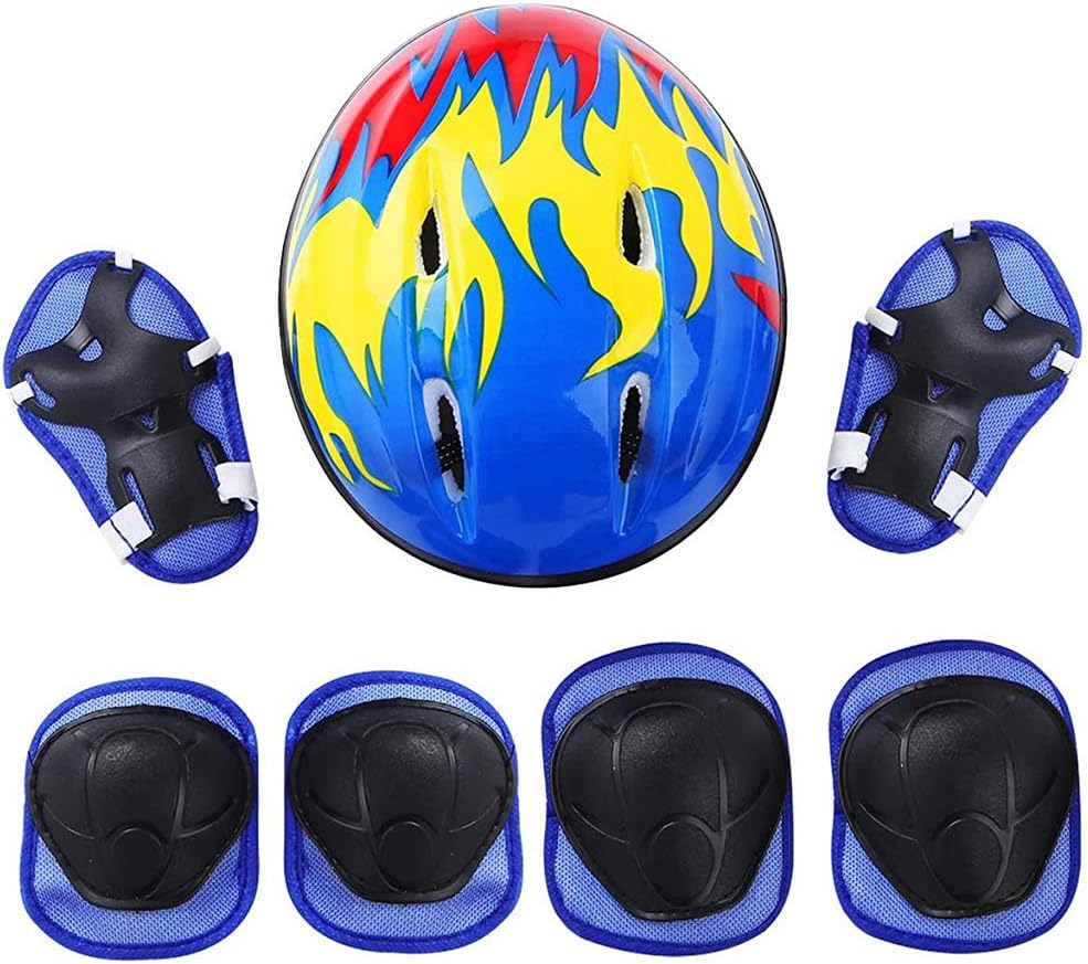 [Protezione -La set di 7 pezzi include il casco, i ginocchieri, i pad di gomito e i cuscinetti da polso per la copertura per la sicurezza completa durante gli sport. [Assorbimento di cuffie] - Il ripieno di schiuma morbido nel casco assorbe l'impatto e offre una comoda regolazione per lunghe ore di gioco. [Dimensione universale] - Una dimensione singola si adatta maggiormente, con cinghie regolabili che garantiscono un aggiustamento sicuro e ben aggiustato per i bambini dai 3 a 8 anni. [Materiali di qualità superiore] - Making e materie plastiche durevoli per uso ripetuto. [Equipaggiamento multifunzionale] - Progettato per varie attività come il pattinaggio e il ciclismo, garantiscono la sicurezza dei bambini durante il gioco.