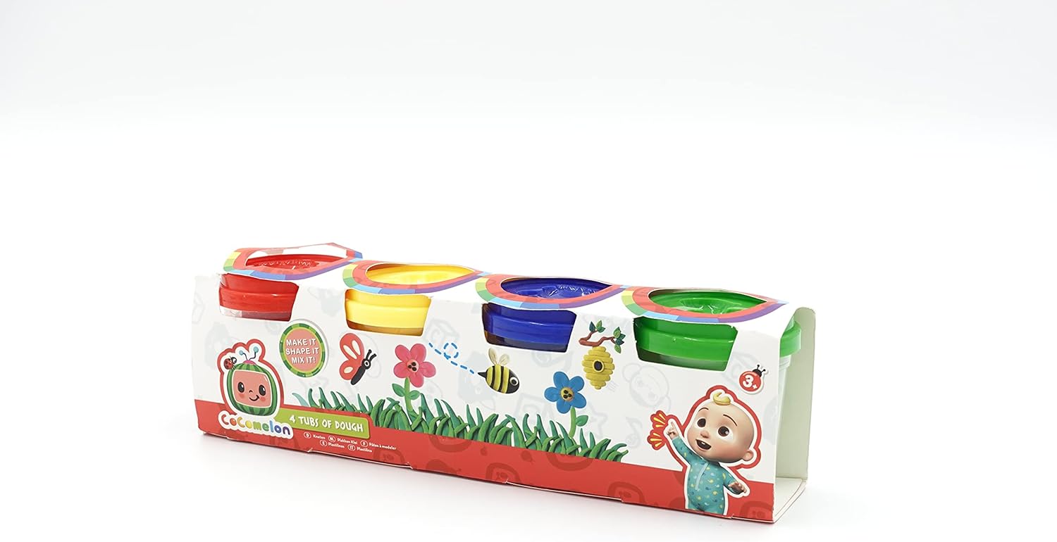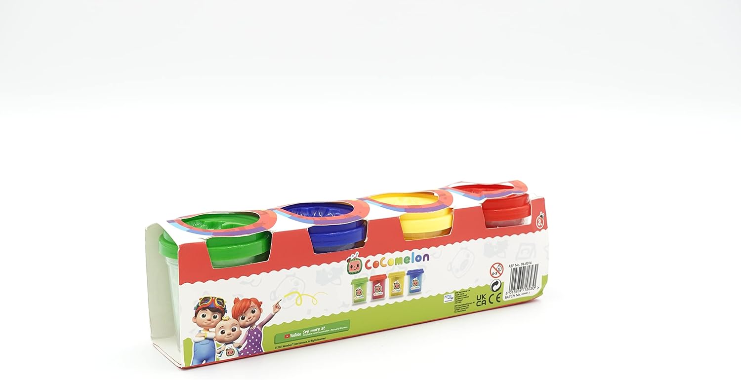 Cocomelon Spt & Mould 4 vasetti di argilla da modellare 5 oz. 4 x vasetti di rosso blu giallo e verde Dagli forma, mescolalo I bastoncini da modellare super morbidi e facili da usare su se stessi e non sulle mani!