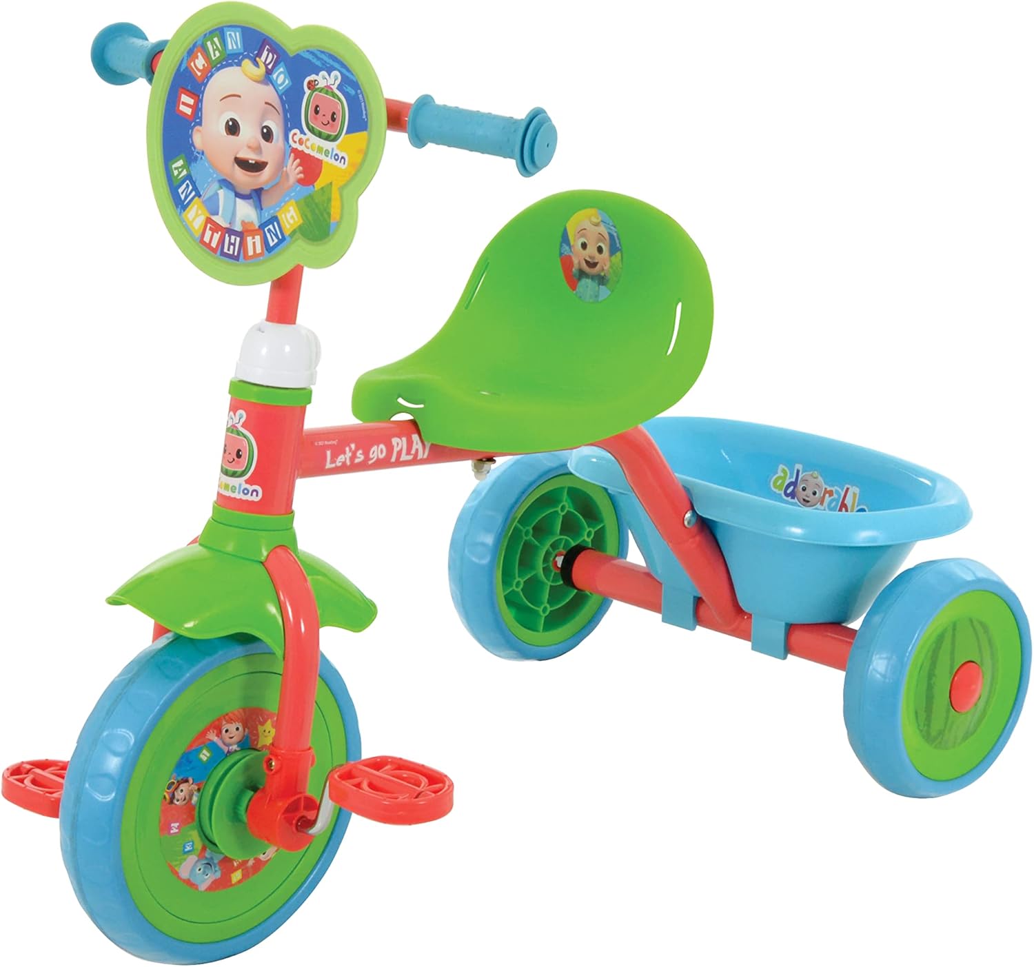 Preferiti dai personaggi: licenza ufficiale CoComelon Con decalcomanie dai colori vivaci, una targa sagomata e componenti perfetti per lo sviluppo uel. Resistente: il telaio in acciaio resistente e gli pneumatici EVA larghi e anti-foratura sentono la fiducia e la longevità del prodotto. Due modalità: il meccanismo della frizione della ruota anteriore facile da cambiare consente ai bambini di riposare i piedi sui pedali in modalità di spinta genitore, mentre si utilizza il genitore regolabile e rimovibile. Comfort: il manubrio dispone di modellati morbidi per le mani e le ruote leggere e larghe con battistrada profonda offrono una guida più fluida e stabile. Un parafango anteriore impedisce ai ciclisti di sporcarsi e protegge dai detriti. Ideale per i bambini piccoli: favorisce lo sviluppo dell'equilibrio e della coordinazione. Può essere regolato per bambini in crescita per migliorare la fiducia e la capacità, con manubrio regolabile da 50 a 53 cm e un'altezza di seduta di 32 cm. Il secchio posteriore è ideale per riporre tutti i tuoi giocattoli preferiti
