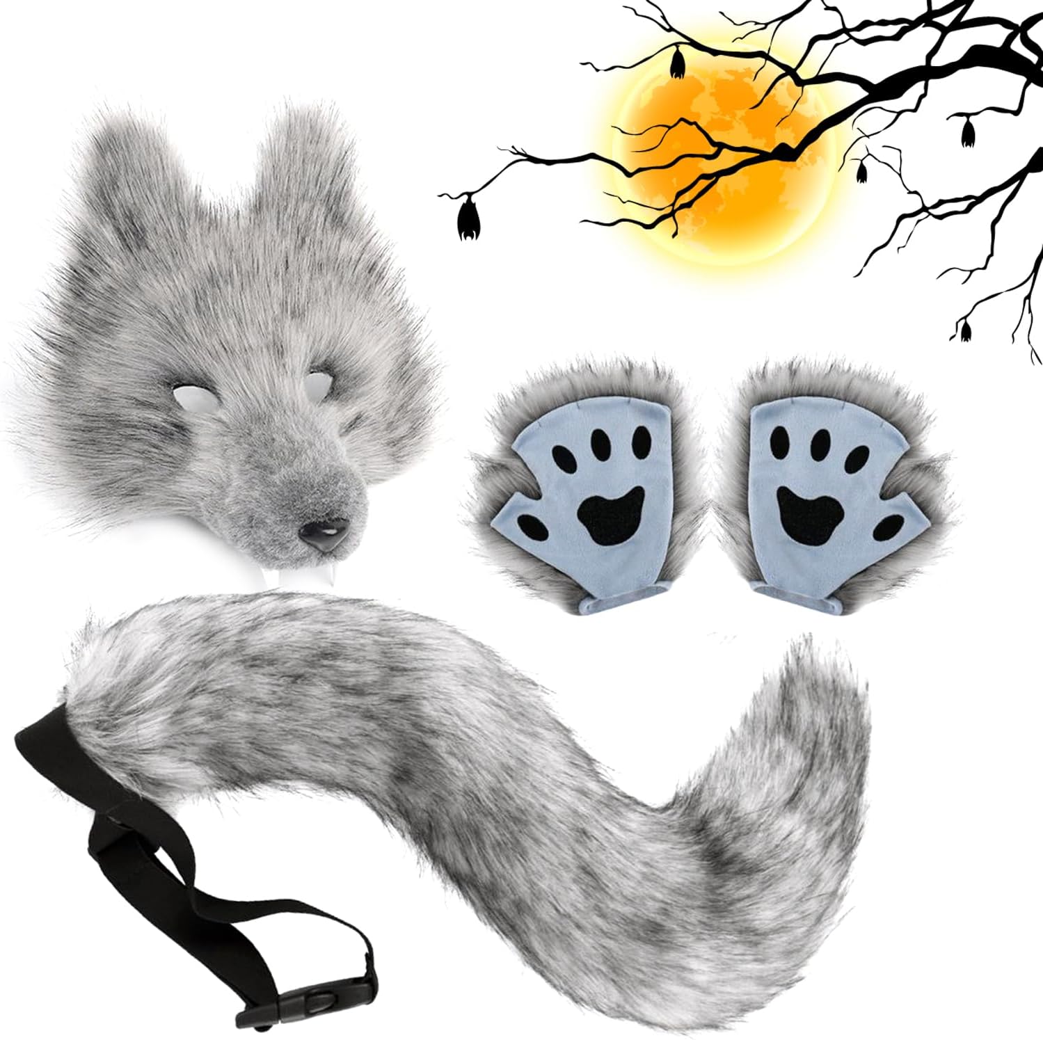 Coda E Orecchie Da | Costumi Finto | Costume Animale Donna per Cosplay Feste | Carnevale Halloween Natale Spettacolo Gioco Di Ruolo Maschera