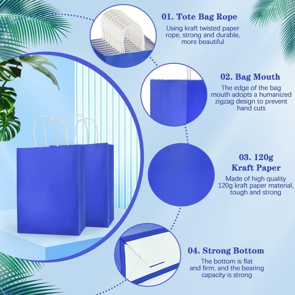 🛍【Materiali in carta Kraft di alta qualità】 - I nostri sacchetti di carta regalo sono realizzati in carta kraft da 120 g di alta qualità, che è durevole, sicura e affidabile e ha una buona tenacità e resistenza all'usura. Adatto a vari scopi di imballaggio, è un valido aiuto per la confezione regalo. La carta kraft in pura cellulosa non contiene cera, candeggina o altri rivestimenti innaturali, quindi puoi usarla con sicurezza. 🛍【Design pratico e umanizzato】 - Il sacchetto di carta blu è realizzato con corda di carta kraft intrecciata, non solo è più bello, ma anche la capacità portante è più forte. L'apertura del sacchetto di carta con manico ha un design a zigzag per evitare tagli alle mani e renderle più sicure. 🛍【Facile da usare】 - Usare piccoli sacchetti regalo di carta per Natale è molto semplice, basta aprirli e puoi usarli. Il fondo dei sacchetti di carta con manici è piatto e sicuro, quindi non devi preoccuparti che gli oggetti nella borsa cadano. Dopo l'uso, puoi piegarlo e riporlo per risparmiare spazio. 🛍【Sacchetto di carta non finito】 - Il nostro sacchetto regalo in carta kraft ha un bellissimo aspetto blu ma è vuoto. Puoi ricrearli con la tua creatività scrivendo, disegnando o attaccandoci sopra altri piccoli oggetti come decorazioni che si abbinano al tema della tua festa. Il set contiene 25 sacchetti di carta per matrimoni blu che misurano 22 × 16 × 8 cm, quantità sufficienti 🛍 【Sacchetti regalo di carta multifunzionali】 - Questi sacchetti di carta per feste blu sono ampiamente utilizzati e possono essere utilizzati per snack come dolci, pasticcini, biscotti e piccole torte. È molto adatto per confezionare regali di Natale, Ringraziamento, feste di compleanno, Pasqua, matrimoni, anniversari, celebrazioni e altre occasioni.