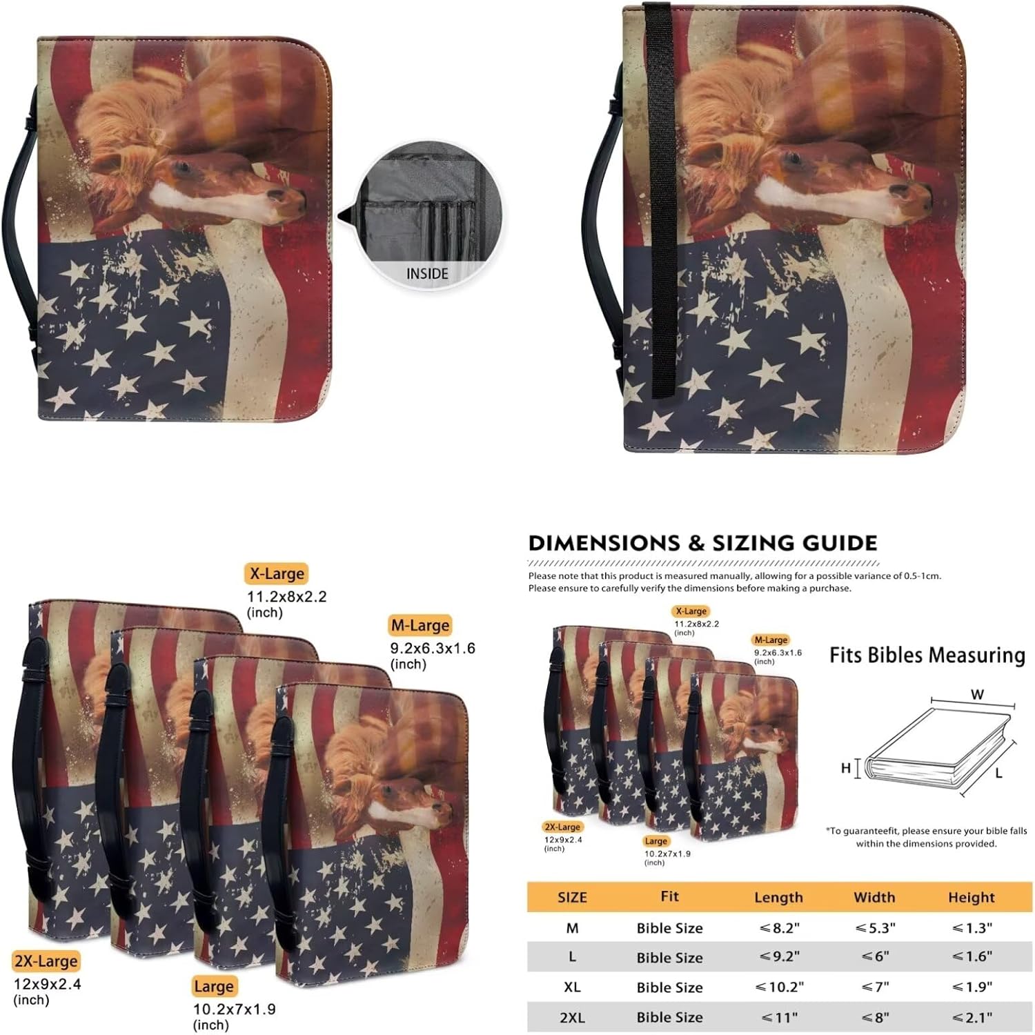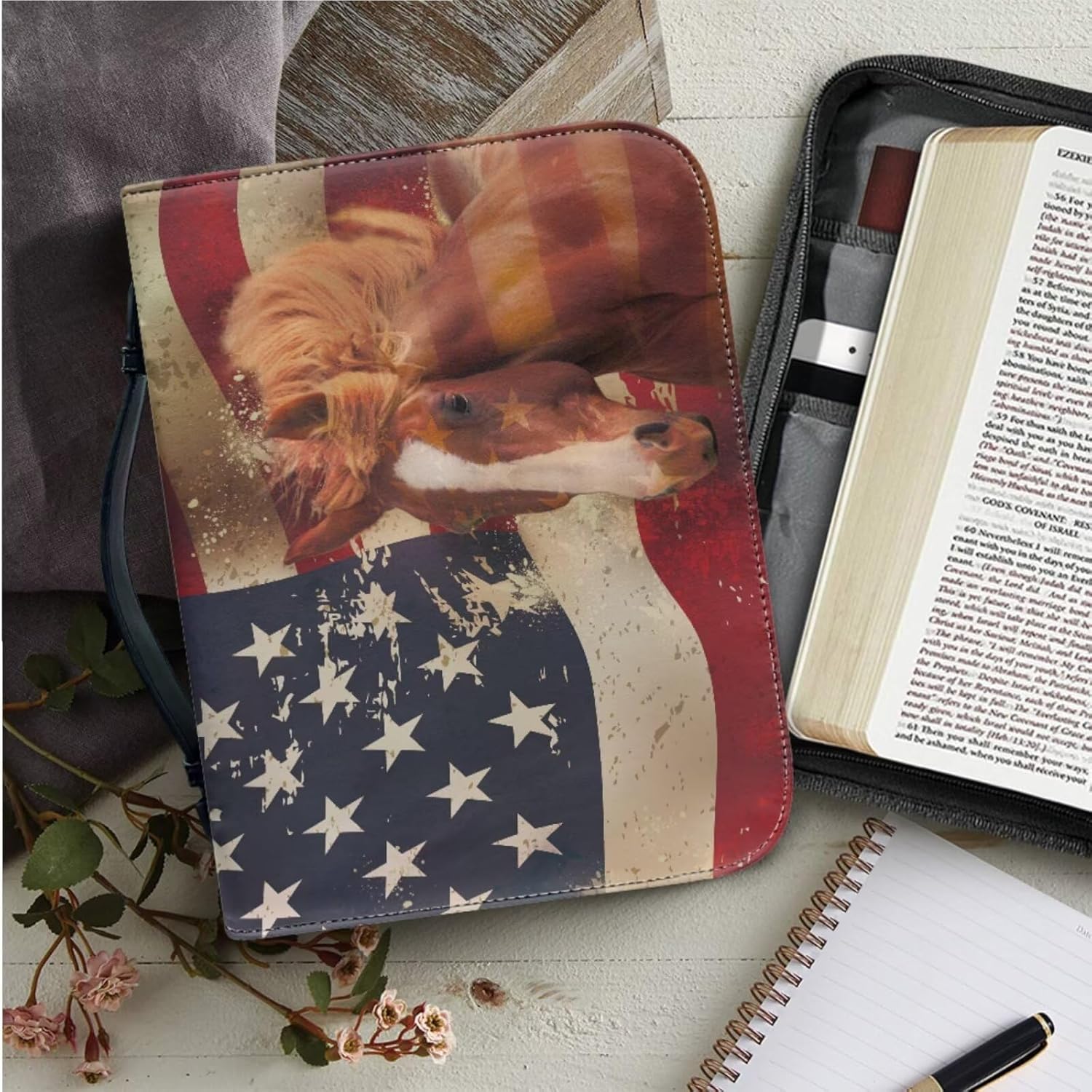 ✿ Set di custodie per bibbia – 1 custodia in pelle per donne e uomini con manici, graziosa confezione da 6 segnalibri, facile da leggere e anti-smarrimento. Materiale impermeabile: realizzata in ecopelle impermeabile di alta qualità, robusta e durevole, non si deforma e non si stropiccia facilmente; questa custodia per bibbia può proteggere la Bibbia dallo sfregamento. Grande capacità: custodia in pelle con segnalibro, perfetta per la maggior parte delle bibbie (S, L, XL) e libri. Viene fornito con tasche e slot per riporre evidenziatori, appunti, penne, diari di preghiera, segnalibri, telefono, ecc. ✿ Più design tra cui scegliere: una varietà di stampe grafiche e modelli, come croce religiosa, Gesù, floreale, bandiera americana, bandiera americana, con croce, bandiera degli Stati Uniti, farfalla, libellula, marmo, Boho, tribale etnico azteco, patriottico, 4 luglio, stile. E personalizza la tua borsa della Bibbia. Regalo per festival: la custodia per il trasporto della Bibbia con segnalibro è un regalo meraviglioso per familiari, amici e colleghi per compleanni, Natale, Pasqua, giorno del Ringraziamento, giorno dell'indipendenza, festa della mamma, festa del papà, San Valentino, festa dell'insegnante, ecc.