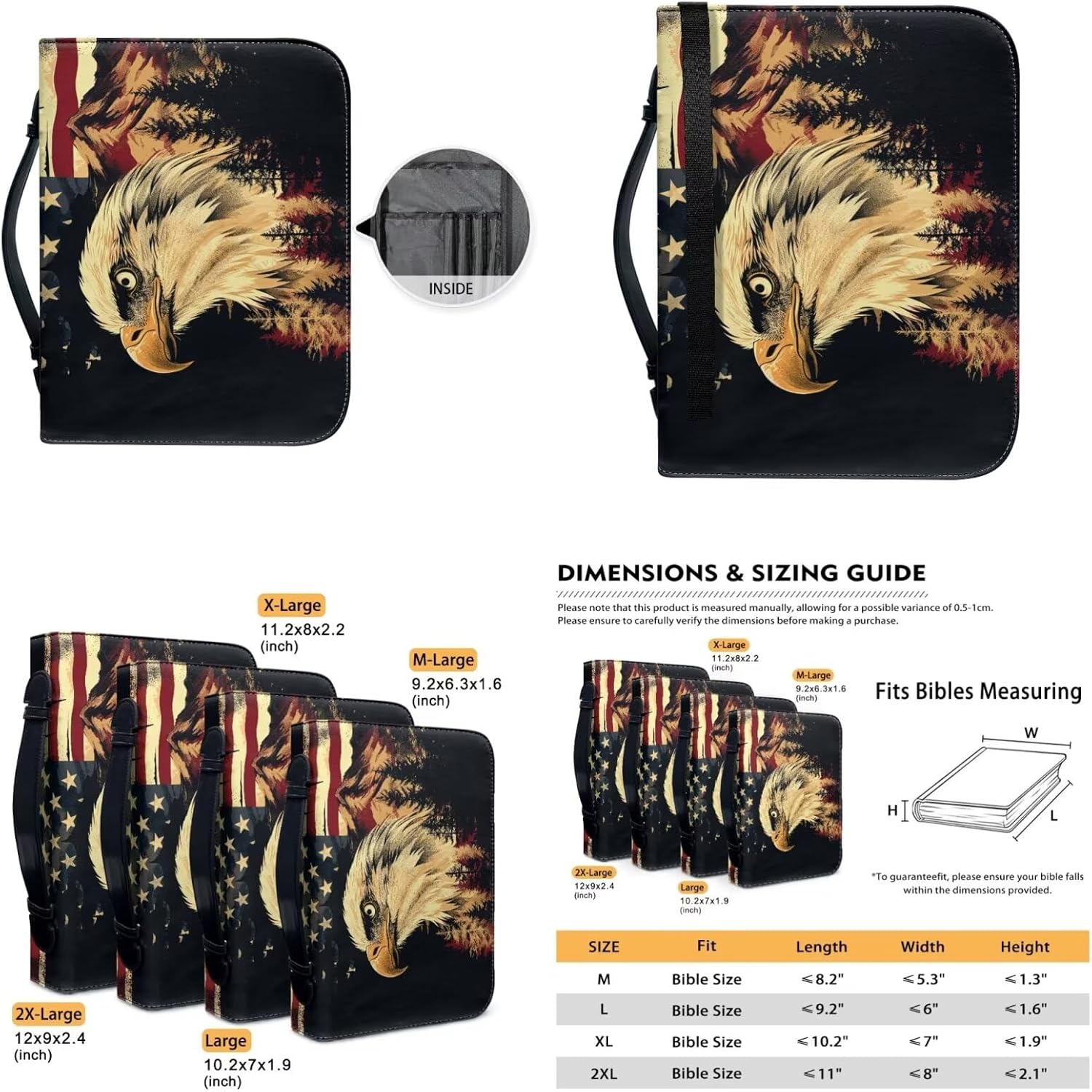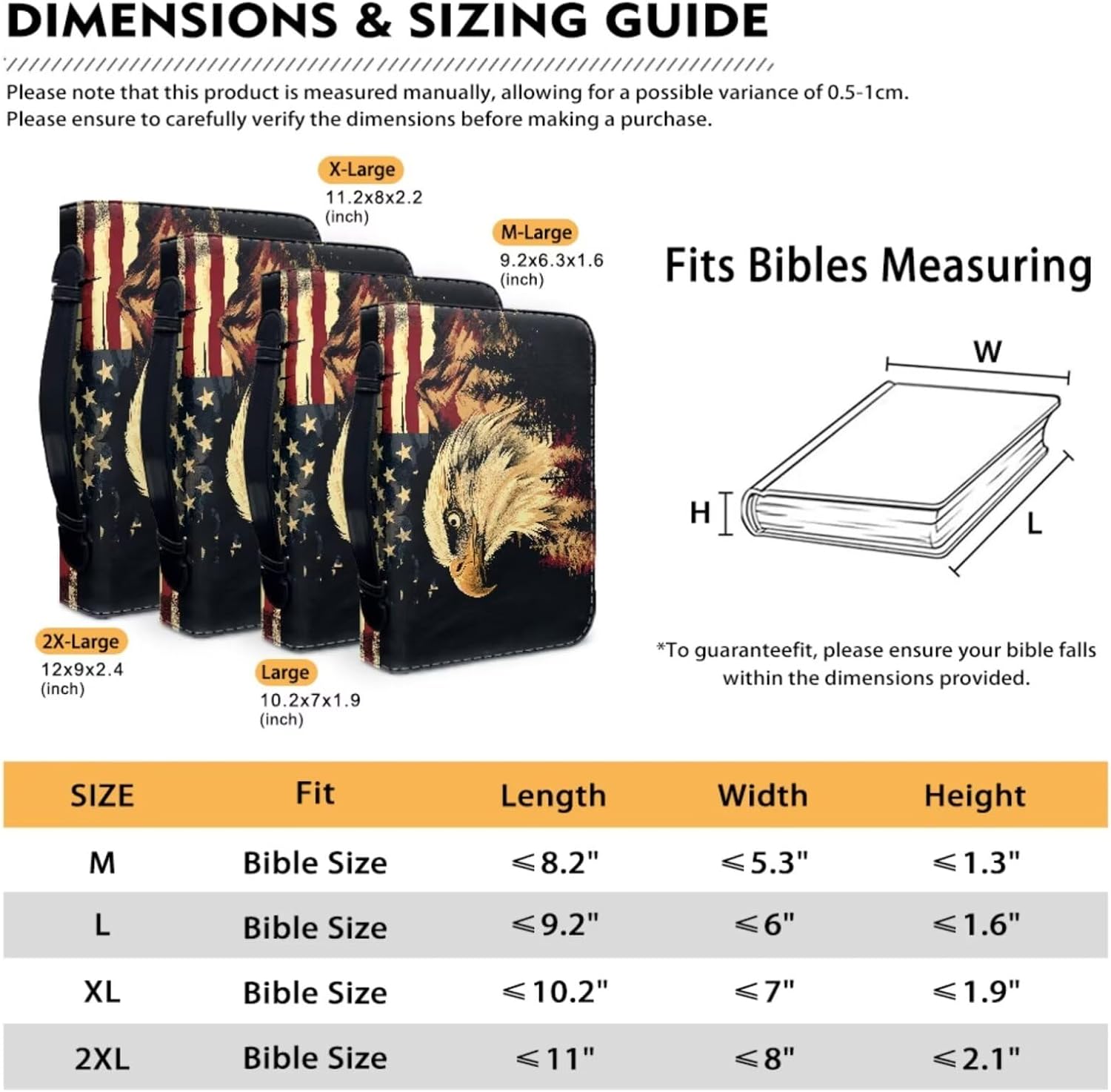 ✿ Set di custodie per bibbia – 1 custodia in pelle per donne e uomini con manici, graziosa confezione da 6 segnalibri, facile da leggere e anti-smarrimento. Materiale impermeabile: realizzata in ecopelle impermeabile di alta qualità, robusta e durevole, non si deforma e non si stropiccia facilmente; questa custodia per bibbia può proteggere la Bibbia dallo sfregamento. Grande capacità: custodia in pelle con segnalibro, perfetta per la maggior parte delle bibbie (S, L, XL) e libri. Viene fornito con tasche e slot per riporre evidenziatori, appunti, penne, diari di preghiera, segnalibri, telefono, ecc. ✿ Più design tra cui scegliere: una varietà di stampe grafiche e modelli, come croce religiosa, Gesù, floreale, bandiera americana, bandiera americana, con croce, bandiera degli Stati Uniti, farfalla, libellula, marmo, Boho, tribale etnico azteco, patriottico, 4 luglio, stile. E personalizza la tua borsa della Bibbia. Regalo per festival: la custodia per il trasporto della Bibbia con segnalibro è un regalo meraviglioso per familiari, amici e colleghi per compleanni, Natale, Pasqua, giorno del Ringraziamento, giorno dell'indipendenza, festa della mamma, festa del papà, San Valentino, festa dell'insegnante, ecc.
