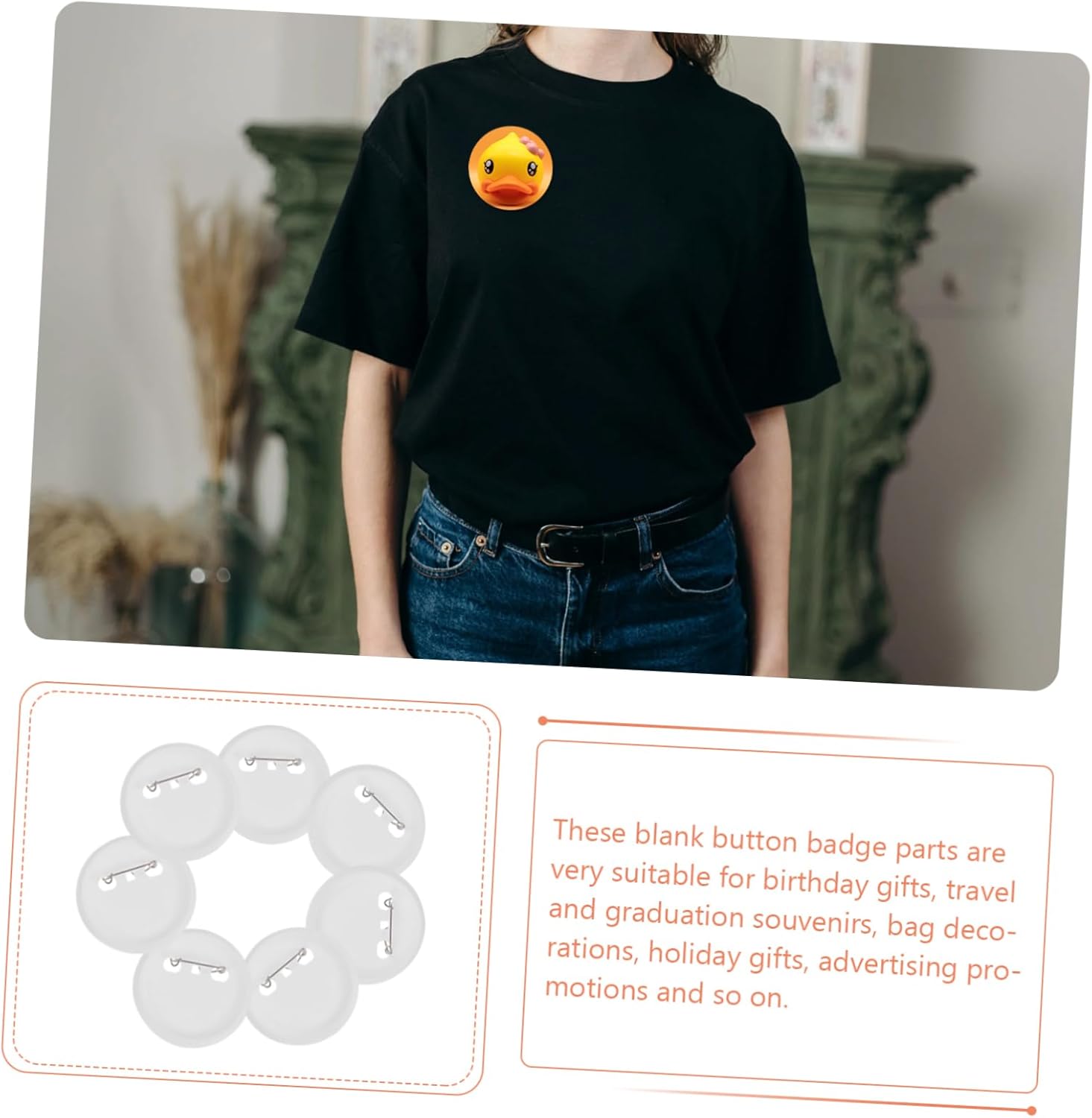 Spille rotonde semplici - Badge per bottoni rotondi fai-da-te - Realizzate in materiale in lega di alta qualità per un uso pratico. Badge per pulsanti trasparenti: queste parti di badge per pulsanti vuoti sono molto adatte per regali di compleanno, souvenir di viaggio e laurea, decorazioni per borse, regali di Natale, promozioni e così via. Set di spille per bottoni fai da te: spilla per bottoni vuota, anche la superficie della lamina è resistente alla polvere. Badge per bottoni rotondi fai-da-te - Questo articolo è un set di badge vuoti, realizzati in materiale di alta qualità per un uso pratico. Rotondo in metallo: può essere indossato su vestiti, scarpe, cappotti e altro.