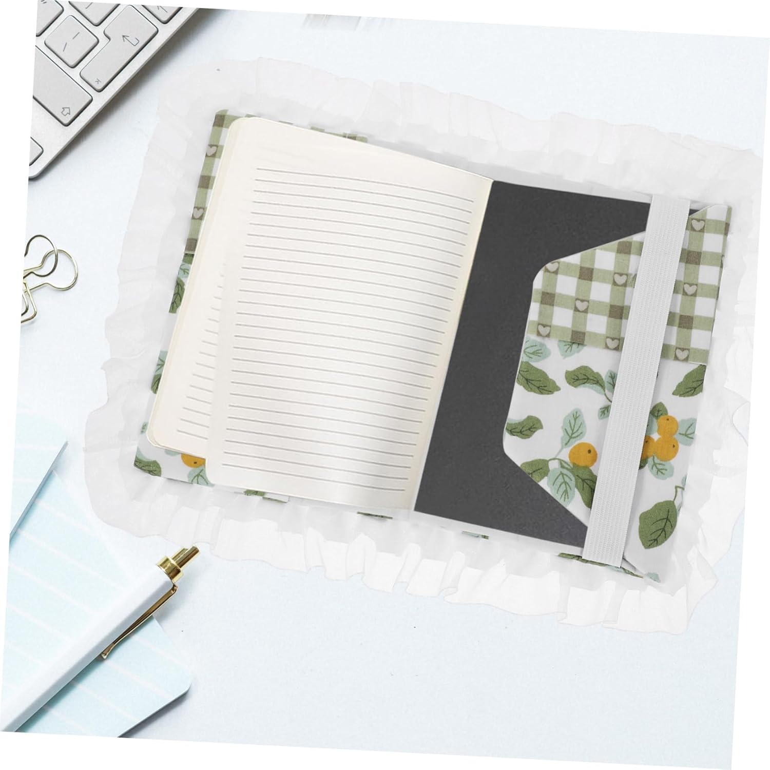 Taccuino in pizzo: questo taccuino in pizzo è antigraffio, può proteggerti acqua, sporco e altro. Guscio del notebook in tessuto: bordi in pizzo con design regolabile, comodo per installarlo sui tuoi libri. Copertine per notebook: la copertina dell'album è realizzata in materiale poliestere, e non facile strappare. Nota: i bordi in pizzo donano una sensazione e delicata. il design protettivo protegge efficacemente il tuo notebook Quaderno di stoffa: con questo quaderno dal design in pizzo, il tuo quaderno sarà perfetto.