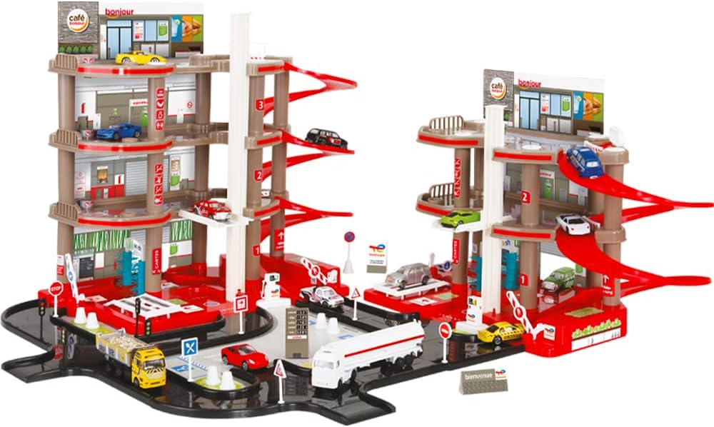 Costruzione robusta: il garage è stato costruito con grande attenzione ai dettagli. Finiture senza spigoli vivi, struttura solida – assolutamente sicuro Montaggio semplice: il parcheggio è facile da montare e con la sua ampia dotazione garantisce un divertimento lungo e fantastico! Caratteristiche principali: 3 livelli di parcheggio, autolavaggio con spazzole morbide, ascensore mobile controllato dall'ascensore superiore, armadio mobile. Giocattolo sicuro: il prodotto è stato testato per la conformità alle norme europee. Dipinto con vernici ecologiche, sicure per i bambini Materiale: legno, MDF