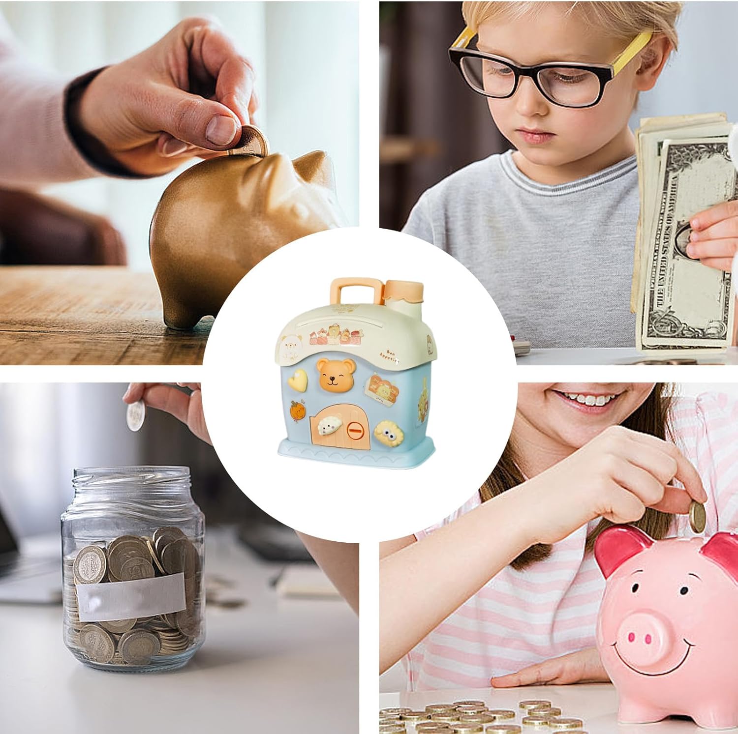 Divertente gioco educativo: questa banca di monete domestiche non solo promuove l'abitudine di salvare, ma funge anche da strumento educativo, che insegna l'importanza della responsabilità finanziaria. Facile da pulire: dì addio alla manutenzione noiosa con questa banca per monete domestiche. Basta pulire con un panno umido. Non è necessario il risciacquo dell'acqua. Tienilo pulito senza sforzo e sembra nuovo di zecca. Ampiamente usato: aggiungi un tocco di fascino alla tua casa con questo simpatico e delicato portavalegna casalingo. Perfetto per librerie e scrivanie. È un modo colorato per salvare e migliorare il tuo. Dimensioni generose: non c'è bisogno di conservare i tuoi risparmi, poiché questa banca per monete di casa ha una grande capacità e garantisce la conservazione sicura di importi significativi. Responsabilità di cura: dai ai tuoi figli il potere di avere i loro risparmi con 2 chiavi e un simpatico adesivo incluso in questa banca portamonete a forma di casa per incoraggiare la responsabilità finanziaria e la creatività.