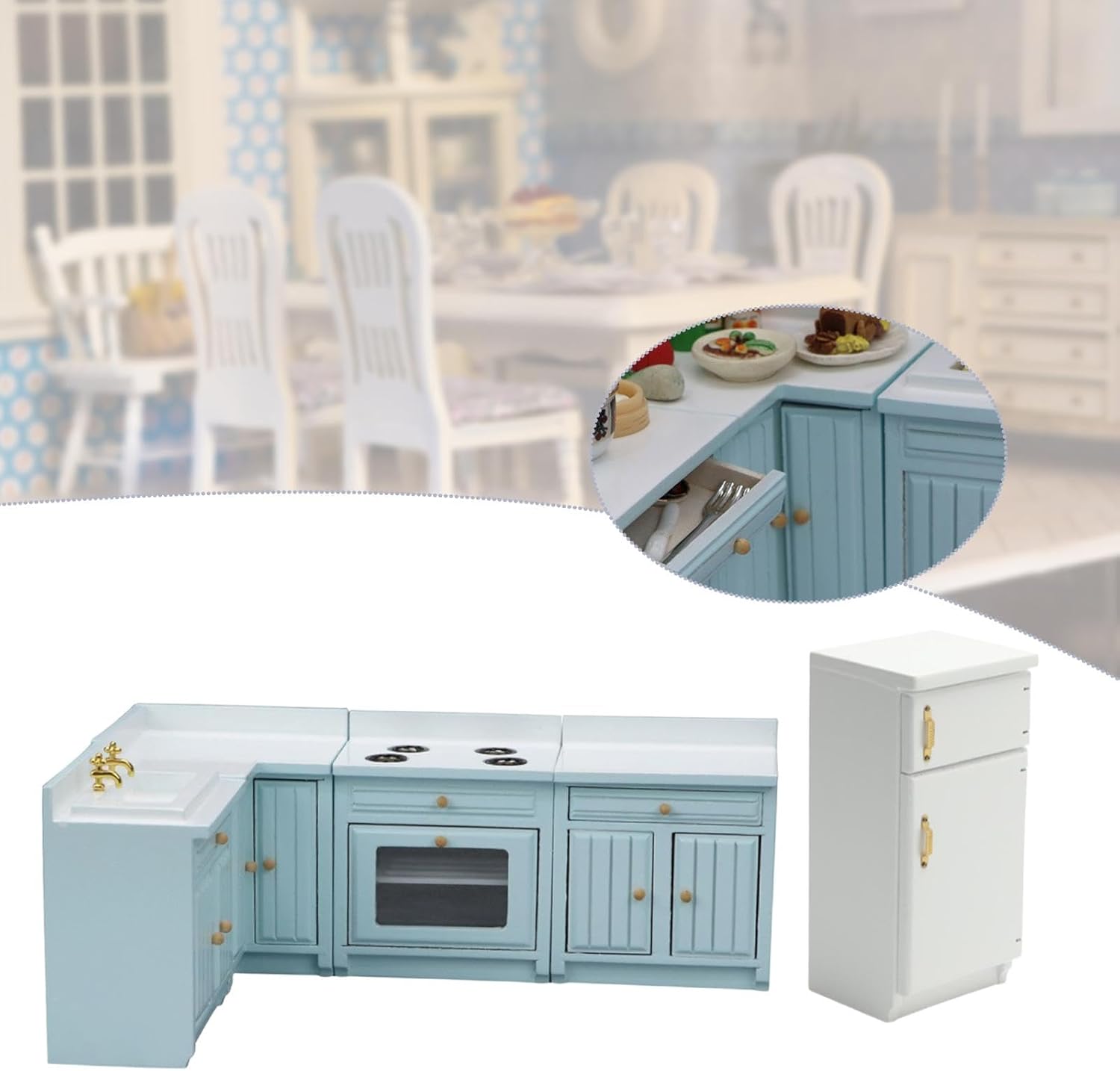【Materiale di alta qualità】 Il set di mobili per casa delle bambole in legno è realizzato in legno robusto con bordi lisci, garantendo durata e un aspetto classico che si adatta a qualsiasi ambiente in miniatura. Adatto anche per i collezionisti che cercano bellissimi espositori in miniatura.,Design realistico: dettagli intricati e lavorazione realistica fanno sembrare questa cucina in miniatura. E può rendere la casa delle bambole molto attraente ed elegante