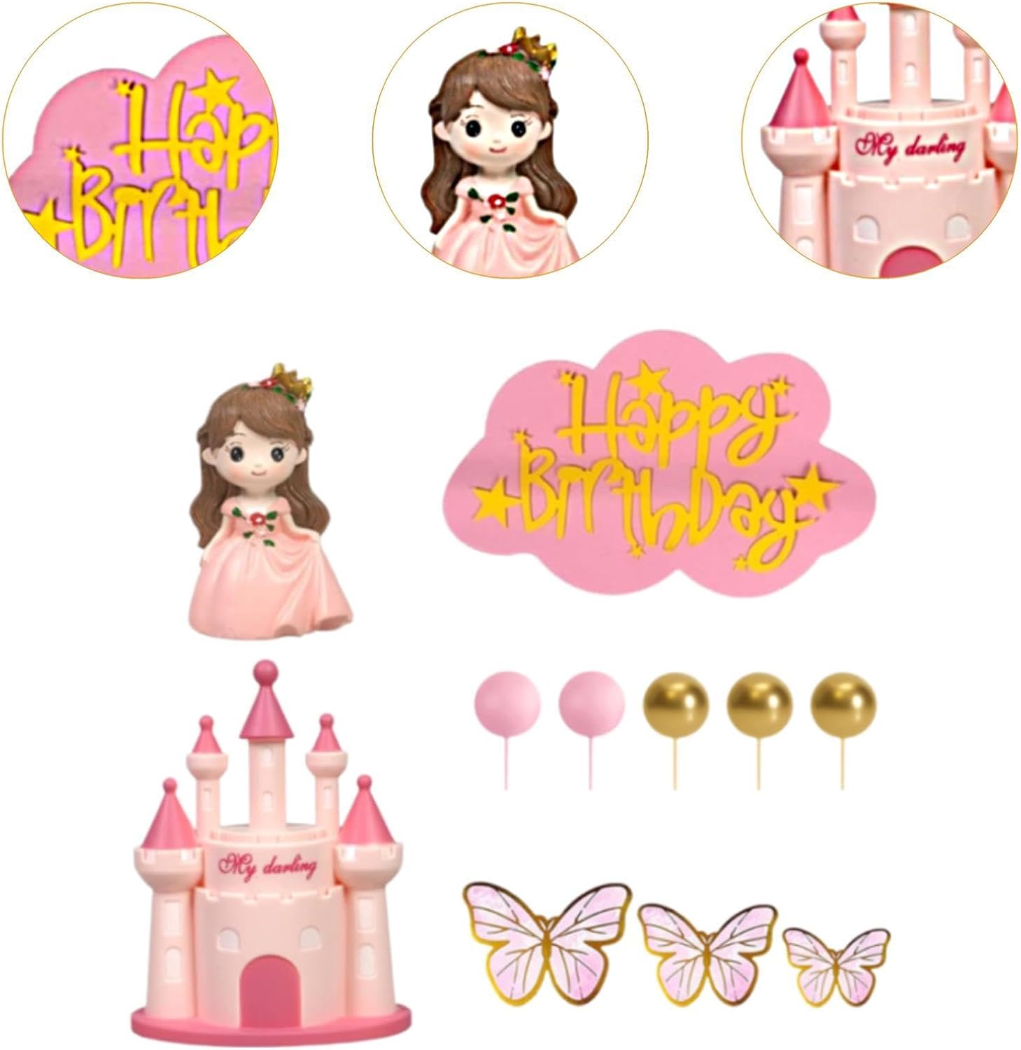 【Materiale】Realizzato in resina (statuine della principessa), PP (modello ), colori e dettagli raffinati garantiscono un utilizzo a lungo termine 【Decorazione principessa】: Topper per torta principessa, goditi della decorazione fai da te per torte 【Set completo da 18 pezzi】: Decorazione per torte con statuette di principesse, , farfalle, che forniscono una decorazione ricca e stratificata per le tue torte 【Occasione】: le decorazioni per compleanno a tema principessa sono ideali per feste di compleanno, eventi a tema principessa, shower o altri raduni 【Facile da usare】: i topper per cupcake possono essere facilmente inseriti in torte o dessert, migliorando l'aspetto visivo dei tuoi dolcetti per le feste