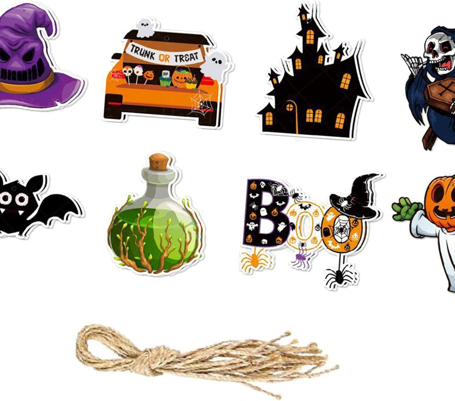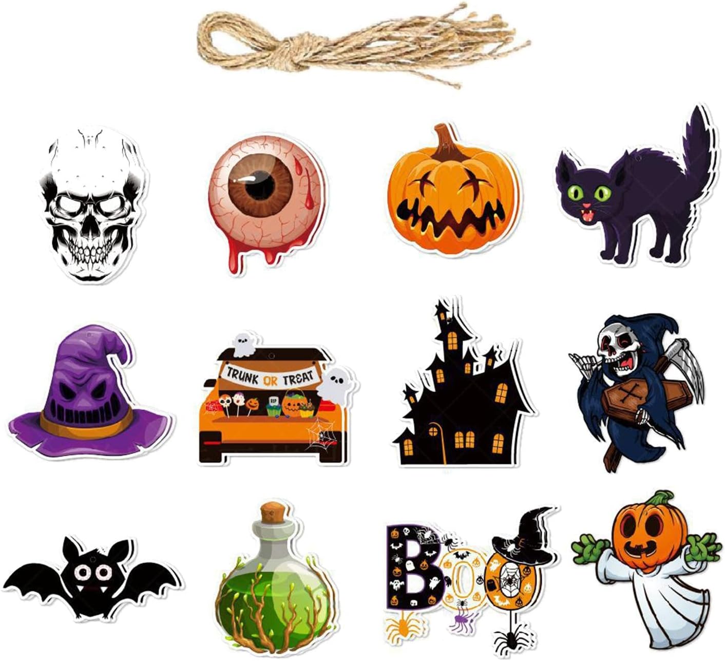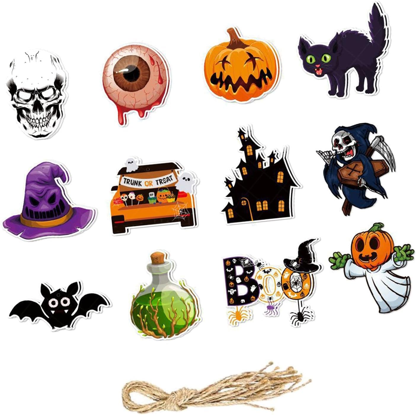 【BANNER DECORAZIONE DI HALLOWEEN】 Perfetto per le decorazioni delle feste di Halloween. Appendilo a rami e soffitti o su pareti, tavoli da dessert, sfondi e altro ancora. 【FACILE DA APPENDERE】 I pezzi dello striscione di Halloween sono preforati, hanno una corda e sono facili da realizzare. Appendi striscioni a tema Halloween sullo sfondo, sulla finestra o sull'albero. Facile da piegare e riporre. 【AMPIA APPLICAZIONE】 Appendi striscioni rapidamente e facilmente in cucina, soggiorno, mensola del caminetto, finestra, ringhiera, cortile o qualsiasi sala per feste come sfondo fotografico. 【DIMENSIONE ADATTA】 Ogni dimensione del banner ha un'altezza di ca. 11 cm-11,5 cm/4,33"-4,53", larghezza ca. La lunghezza del banner è di ca. 10,5 cm-12,4 cm (4,13"-4,88"), la lunghezza del banner può essere regolata di conseguenza e puoi appenderlo ovunque tu voglia. 【BANNER】 Il banner di carta è realizzato con materiale cartaceo di alta qualità e utilizzato molte volte. Completamente riciclabile.