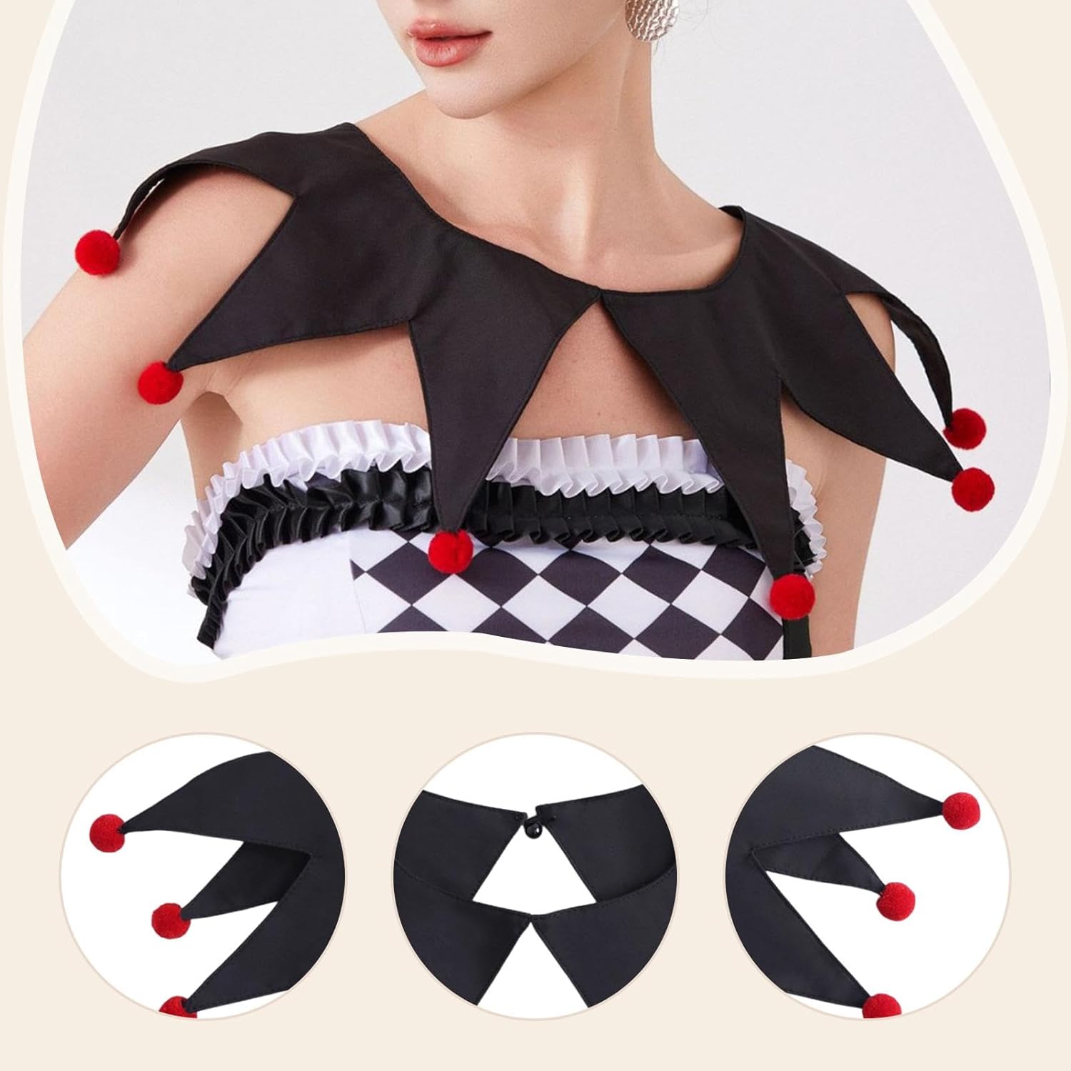 【Accessori per costumi da giullare】: questo colletto da clown è un accessorio sia per uomini che per donne, ottimo per Halloween, cosplay, spettacoli circensi e feste a tema, 【Taglia】: Progettato con una nferenza del collo di 58 cm/22,83 pollici, questo collare da clown da offre una vestibilità aderente ma comoda per la maggior parte degli indossatori 【Facile da indossare】: i collari da clown sono facili da indossare e da togliere, progettati per vestirsi velocemente in modo da poter essere pronti in pochi secondi, rendendolo comodo 【Pacchetto】: Riceverai 1 collare da clown di Halloween 【Materiale】: i collari da clown di Halloween sono realizzati in poliestere, offrendo comfort e traspirabilità per un uso prolungato durante eventi o spettacoli