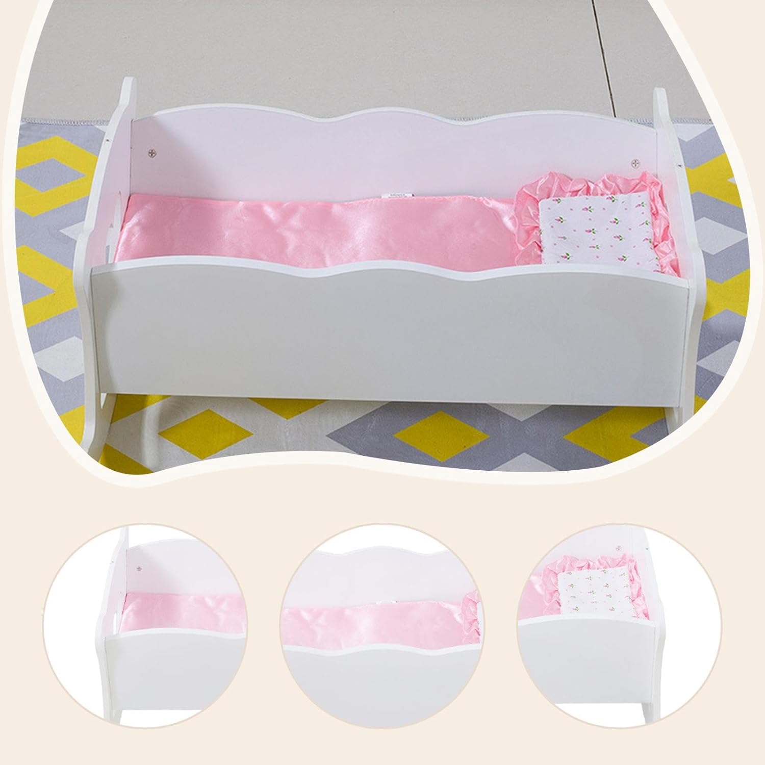 【Funzione di dondolo realistica】: con design a dondolo della culla, questa coinvolgente culla da gioco di finzione migliora l'autenticità degli scenari di cura delle bambole 【Set completo di biancheria da letto】: include cuscino e trapunta, questo letto completo per bambole da 18 pollici offre un'esperienza di cura realistica per un gioco fantasioso 【Costruzione in legno di alta qualità】: realizzata in legno massello di qualità con bordi lisci lucidati a mano, questa culla per bambole in legno garantisce sicurezza durante il gioco 【Informazioni sulle dimensioni】 per bambole in legno da 18 pollici con imbottitura misura circa 52,5 cm x 27,5 cm x 25 cm / 20,67 pollici x 10,83 pollici x 9,84 pollici 【Facile da montare】: Progettato con una costruzione semplice e istruzioni chiare, questo pratico set di biancheria da letto per bambole può essere assemblato rapidamente per un gioco immediato