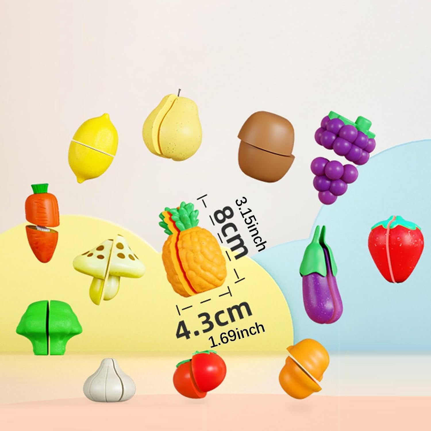 【Materiale di costruzione】: Realizzati in materiale PP, questi frutti giocattolo sono costruiti per durare nella collezione di giocattoli del tuo bambino 【Set di accessori versatili】: accessori per finta sono adatti per lavagne interattive, cucine giocattolo o contenitori sensoriali. 【Regalo】: il set da taglio realistico è un regalo ideale per bambini, ragazzi e ragazze per compleanni e vacanze 【Strumento di apprendimento precoce coinvolgente】: stimola lo sviluppo cognitivo del tuo bambino con questo set di giocattoli a base di frutta. È progettato per l'educazione precoce, aiutando i più piccoli a imparare a identificare diversi frutti, colori e forme in modo divertente e pratico. 【Divertimento interattivo con taglio e gioco】: il giocattolo alimentare da taglio è pensato per il gioco di ruolo. L'azione di taglio aiuta a sviluppare capacità motorie fini fondamentali, la coordinazione occhio-mano e incoraggia il gioco di ruolo fantasioso.
