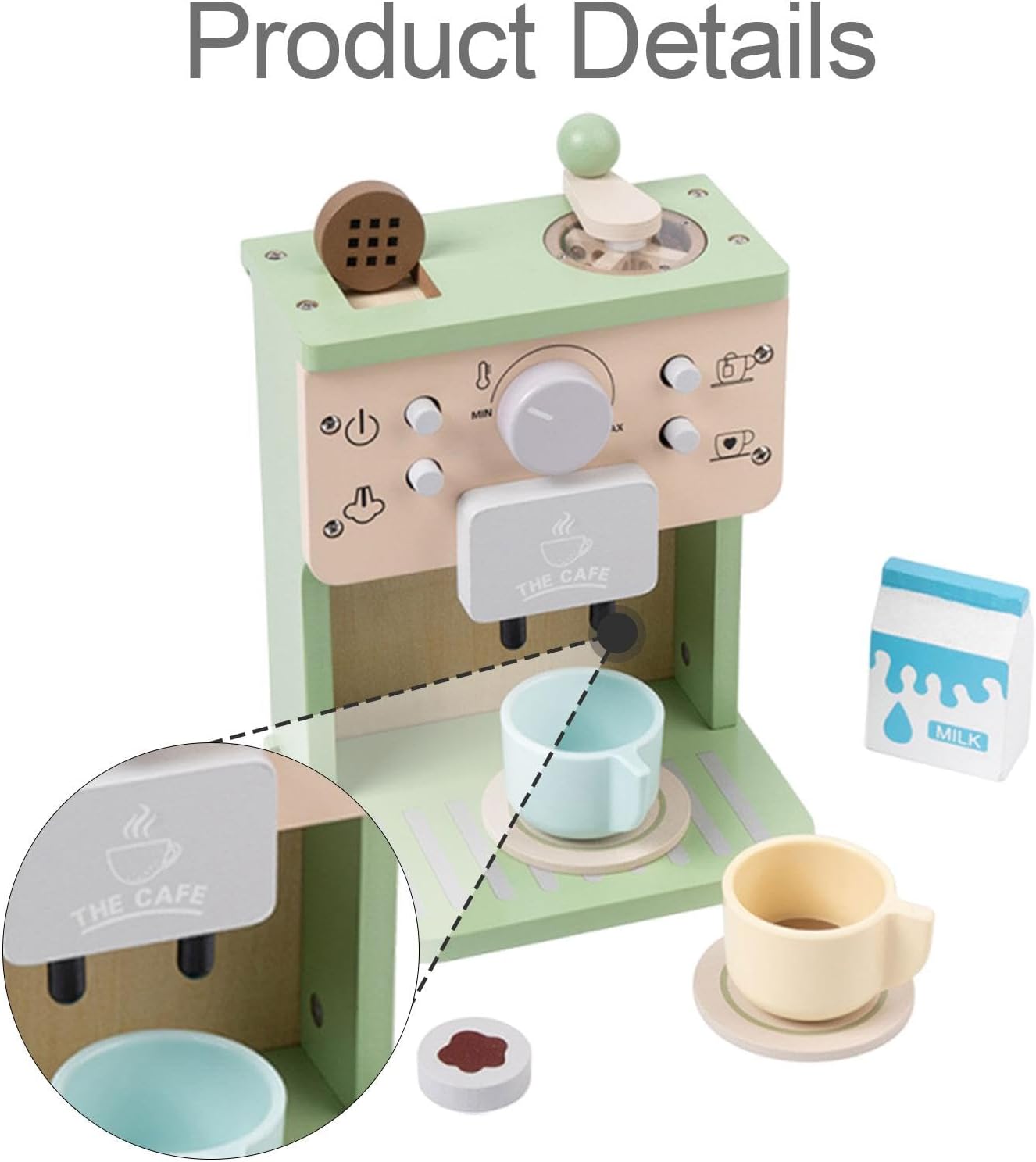 【Set completo incluso】: il pacchetto include un set completo di mini macchine da caffè giocattolo in legno, fornendo tutto il necessario affinché il tuo bambino possa iniziare i suoi fantasiosi viaggi 【Apprendimento immersivo】: progettato per fornire un ambiente di apprendimento immersivo, questo giocattolo incoraggia l'apprendimento esperienziale in cui i bambini possono divertirsi con il gioco di finzione mentre comprendono i passaggi necessari per preparare una tazza di caffè 【Esperienza di gioco interattiva】: questa mini macchina da caffè giocattolo in legno bambini un'esperienza di gioco di ruolo coinvolgente, consentendo loro di simulare il processo di preparazione del caffè con effetti sonori realistici e funzioni interattive come la rotazione delle leve e la macinazione dei chicchi di caffè. 【Dimensioni compatte per una facile maneggevolezza】: con dimensioni di 15 cm x 12,2 cm x 21,5 cm / 5,91 pollici x 4,80 pollici x 8,46 pollici, questa mini macchina da caffè ha le dimensioni perfette per le manine dei bambini, rendendola facile da maneggiare e utilizzare durante le loro avventure di gioco 【Materiale in legno di qualità】: realizzato in legno, questo giocattolo garantisce un utilizzo a lungo termine e sicurezza per i bambini mentre esplorano la loro creatività e immaginazione attraverso il gioco