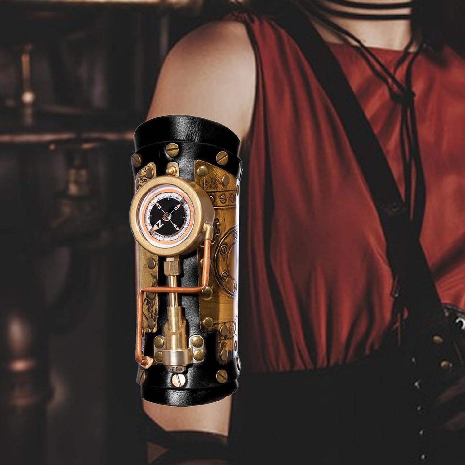 【Materiale di qualità】 Questa manica da braccio Steampunk è realizzata in materiale in pelle PU, leggero, robusto e facile da indossare. 【Universale】Taglia universale, 1 taglia adatta a . Il vambraccio medievale è ottimo per costumi in maschera, oggetti di scena teatrali, costumi di festival e rievocazioni storiche. 【Design】Stile steampunk vintage, tono nero, pieno di elementi a vite, con una bussola resistente. 【Funzionale】 Ottimo per cosplay o un'aggiunta sorprendente al tuo guardaroba, questo braccialetto offre un pezzo versatile che ti consente di mostrare il tuo per lo stile steampunk. Applicazione: questo cinturino da polso steampunk nero è perfetto per cerca abiti da pirata con abiti steampunk.