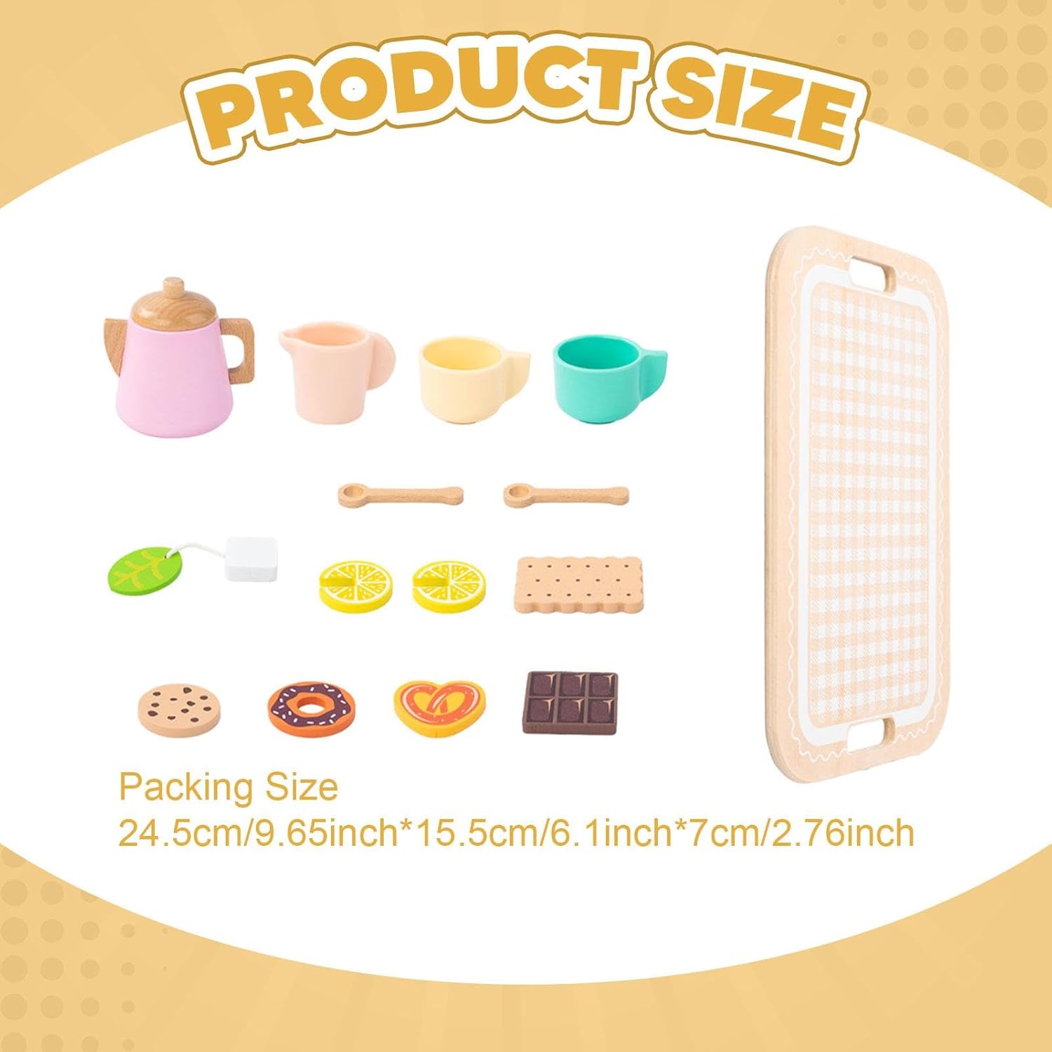 【Sviluppo delle abilità】: impegnarsi nel gioco di finzione con questo set da tè per bambini piccoli migliora le capacità motorie e la coordinazione occhio-mano dei bambini, favorendo la loro capacità di svolgere compiti in modo indipendente 【Set per giochi fantasiosi】: il set per il gioco del tè di finzione include tutto il necessario per un fantastico gioco del tè di finzione, il tutto realizzato con materiali di legno e resina di qualità per un uso prolungato 【Legame familiare】: incoraggia l'interazione genitore-figlio condividendo momenti gioiosi di tè pomeridiano, rafforzando le connessioni emotive 【Design】: Caratterizzato da un colore delizioso e da una raffinata lavorazione artigianale, questo set da tè in legno cattura l'attenzione dei bambini, rendendo il gioco più divertente con la sua varietà di accessori da tè 【Esperienza di gioco interattiva】: questo set di giocattoli in legno per il tè pomeridiano consente ai bambini di godersi simulazioni di vita quotidiana con amici, aiutandoli ad apprendere abilità e conoscenze essenziali per la vita attraverso un gioco fantasioso