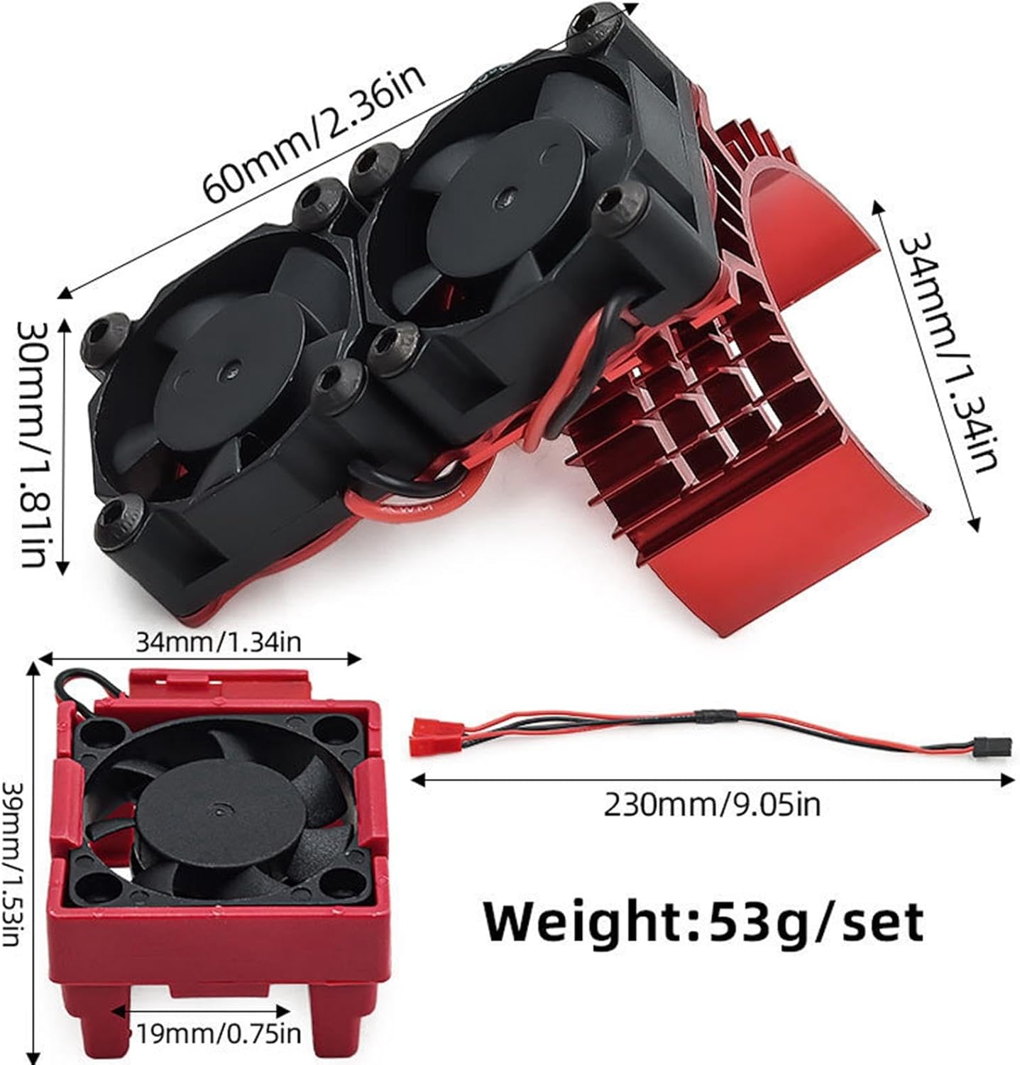 【Compatibile per 1/10 e 1/8】: Progettato per modelli come -3S, (2WD/4WD) 【Intervallo di tensione】: funziona con sistemi di alimentazione da 5 7,4 V, garantendo prestazioni stabili 【Compatto e leggero】: misura 60 × 6 cm x 3 cm / 2,36 pollici x 1,18 pollici (dimensione totale) e 3,4 cm x 3,9 cm / 1,34 pollici x 1,54 pollici (ventola singola) con un cavo da 23 cm / 9,06 pollici per un'installazione flessibile 【Set completo incluso】: viene fornito come pacchetto all'uso con tutti i componenti necessari 【Raffreddamento ad alte prestazioni】: la ventola in materiale di qualità funziona 10000 giri/min per un'efficiente dissipazione del calore