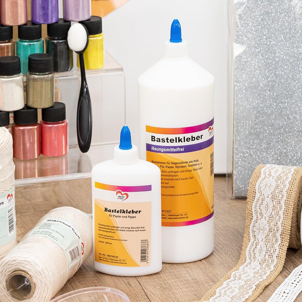 Colla per bricolage, 250 ml. A base di acqua, senza solventi, solubile in acqua. Una volta asciutta è trasparente. Adatta per bambini, scuola, asilo.