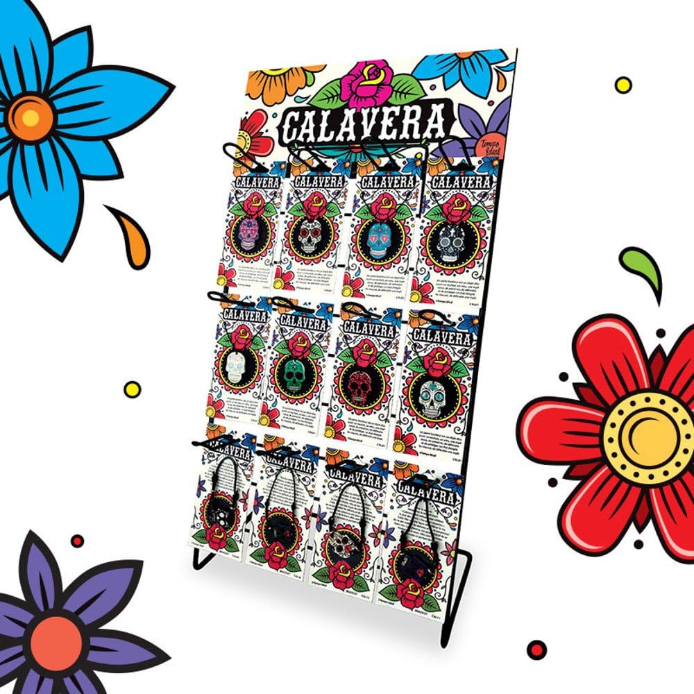 Nella cultura messicana, la testa di morto "Calavera è utilizzata per celebrare il giorno dei morti" Dia De Los Muertos. Questa festa è un modo per celebrare la vita, Non dimenticare i morti e di ricordare le loro vite. I calaveras hanno lo scopo di divertenti della morte, sono decorate, molto colorate e portano felicità. Ciondolo "Calavera montato su una catena nera e presentato su una scheda bilingue con testo generico (inglese – francese). Dimensione ciondolo: 3,3 x 2,4 cm Dimensioni catena: 45 cm + 5 cm di catena aggiuntiva