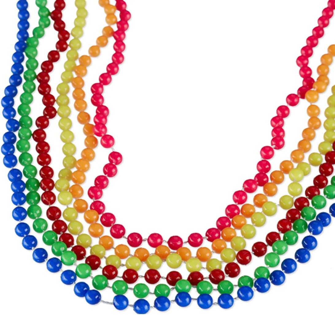Accessorio alla moda: collanine ideali per carnevali o feste a tema - accessorio hippie attraente Costume: ideale per travestirsi come una persona o una diva degli anni ‘80 - originale & chic Versatile: potete usare le collanine in combinazione tra loro o come potete usarle come braccialetti Colorate: collane in 6 colori vivaci - in color giallo, verde, rosso, blu, arancione e fucsia Contenuto: 12 collane colorate con perline in plastica - lunghezza: 49 cm ca. - In 6 colori vivaci