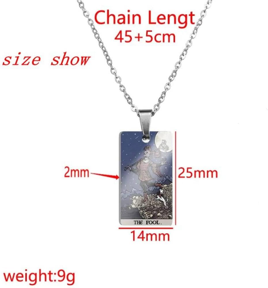 【MATERIALE】 La collana dei tarocchi è realizzata con materiali di alta qualità per garantire una lunga durata, che non è facile da sbiadire, ossidarsi, macchiare o annerire. Puoi indossare questa collana di tarocchi per mostrare il tuo stile affascinante senza alcuna preoccupazione. Collana classica di tarocchi: le misteriose carte dei tarocchi ci forniscono la giusta direzione per il futuro e ci aiutano a scegliere meglio il passo successivo. Ogni collana di tarocchi ha significati diversi. Ispirandoci alla divinazione dei tarocchi, abbiamo creato questa collana alla moda con i tarocchi. Indossarlo è una buona scelta per te. Design unico: questa collana è ispirata alle carte dei tarocchi, semplice e alla moda. Sono disponibili diversi stili. Può soddisfare le tue diverse esigenze quotidiane e vale la pena acquistarlo. Dimensioni: dimensioni del pendente: 25 x 14 mm, lunghezza della catena: 45+5 cm, peso: 9 g. REGALO PERFETTO: i gioielli sono sempre il regalo perfetto. È un regalo premuroso per mamma, moglie, fidanzata, migliore amica. Adatto come regali di San Valentino, regali per la festa della mamma, regali di Natale, regali di compleanno, regali di anniversario, regali di nozze, regali per feste, regali di laurea, regali di ritorno a scuola.